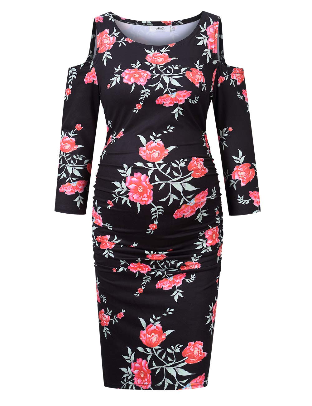 Maternity Dress Women's Scoop Neck Could Shoulder Ruched Maternity Dresses