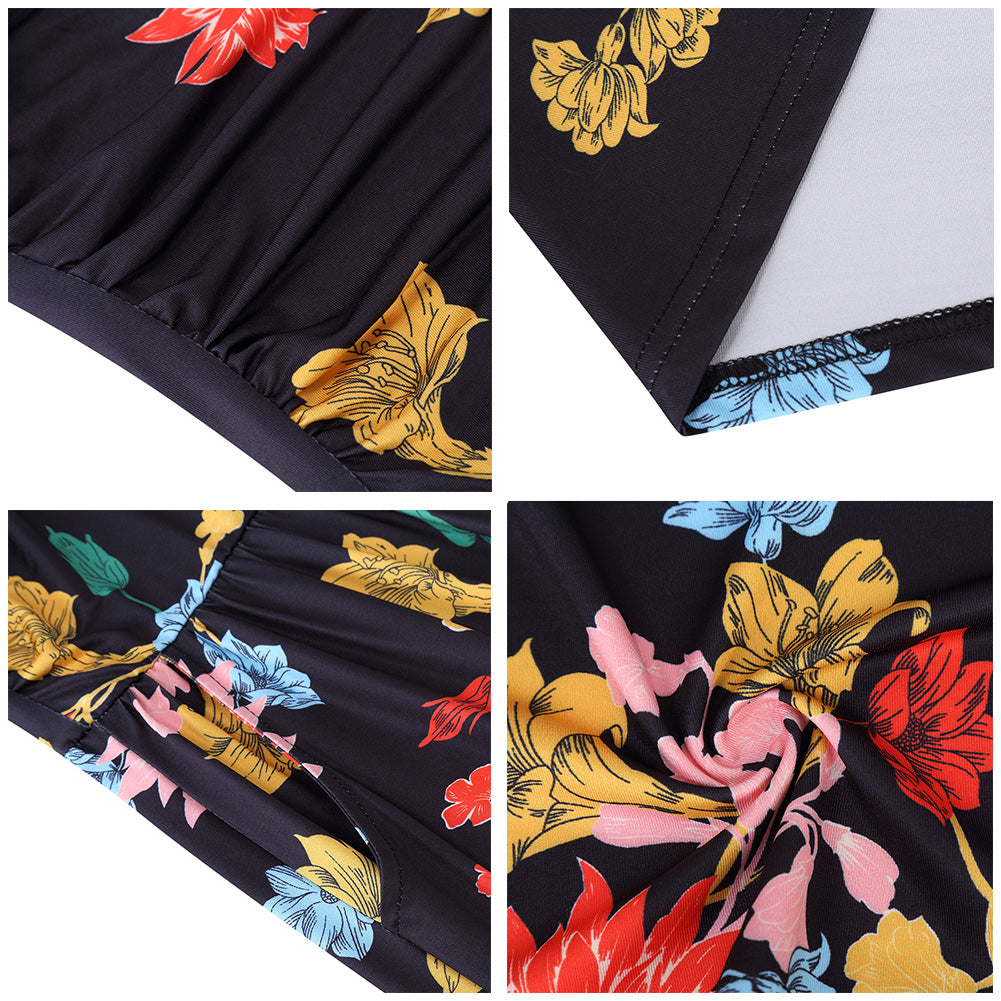 YESFASHION Women's Strapless Graceful Floral Party Maxi Long Dress Canna Black