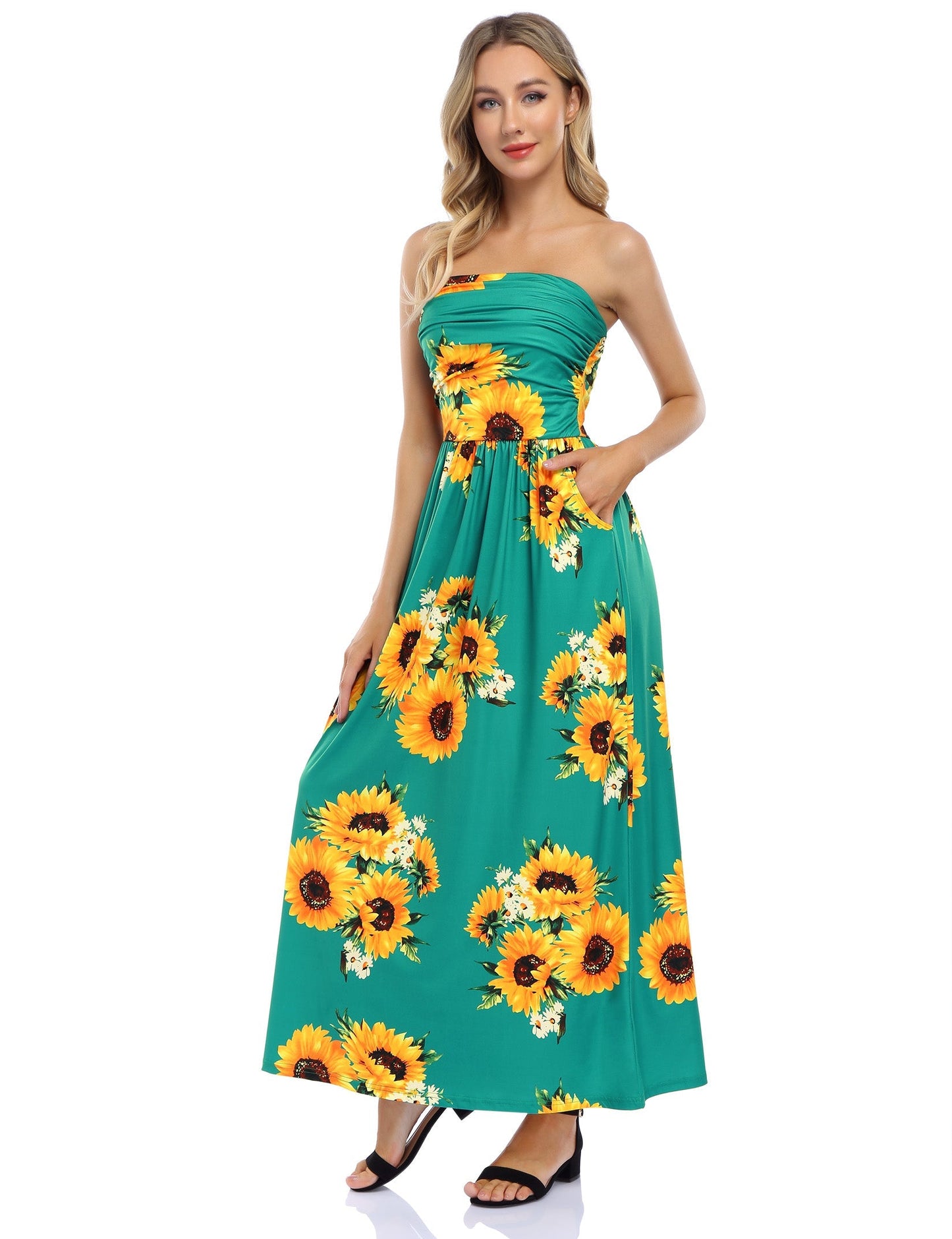 YESFASHION Women's Strapless Graceful Floral Party Maxi Long Dress Green