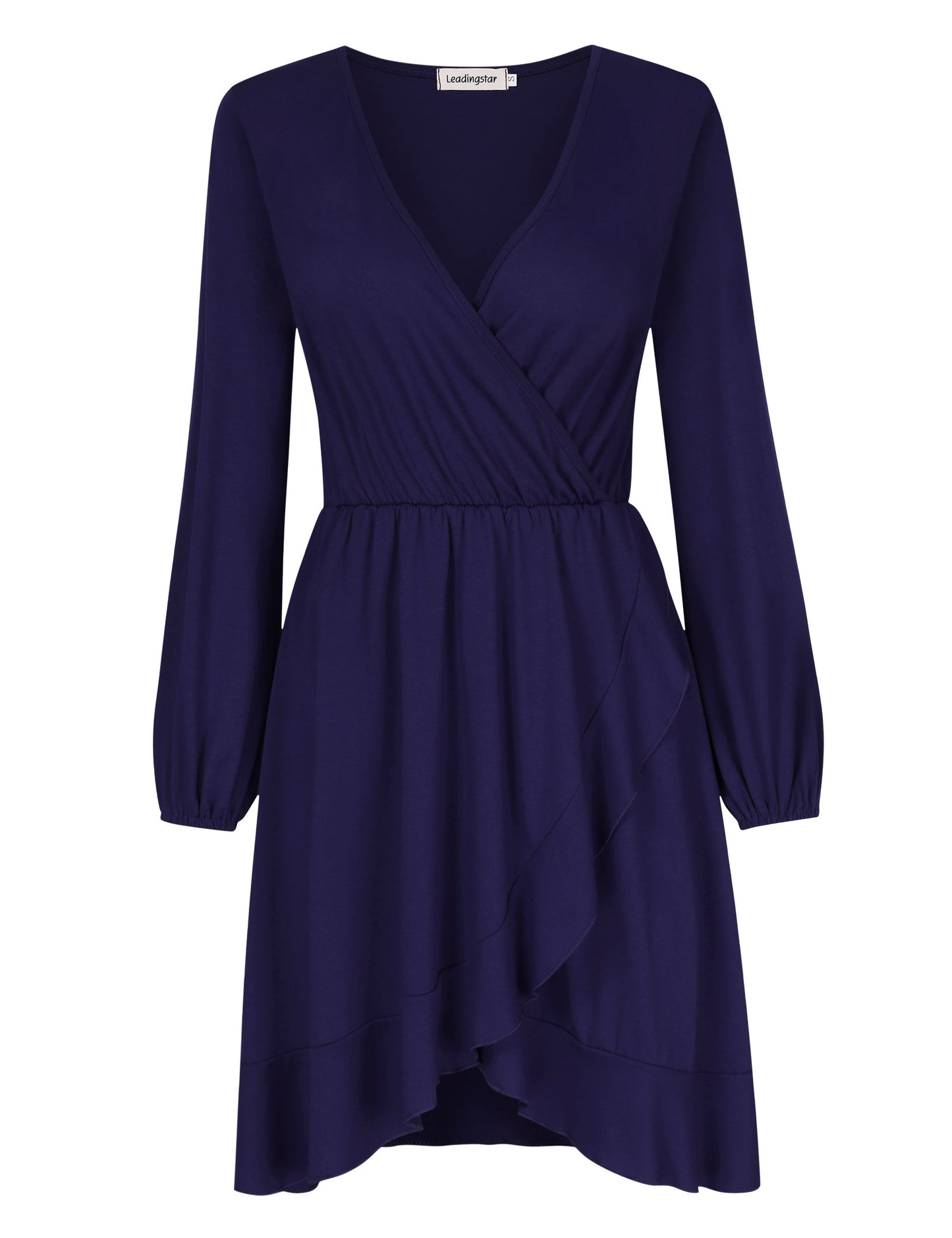 YESFASHION Women's Vneck A-Line Ruffles Cocktail Party Dress