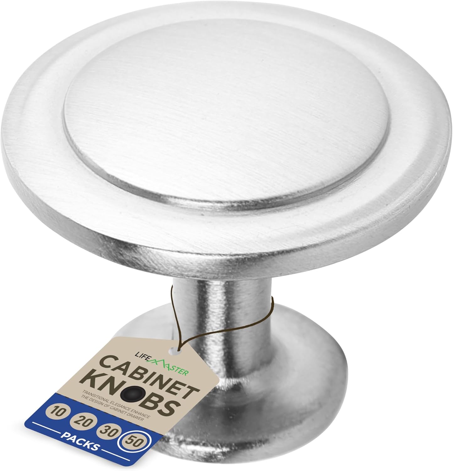 LifeMaster 50pcs 1-1/4" Brushed Nickel Cabinet Knobs - Rust-Proof Finish, Modern Design, Strong Zinc Alloy Construction, Complete with 100 Screws. Transform Your Space with Style and Durability!