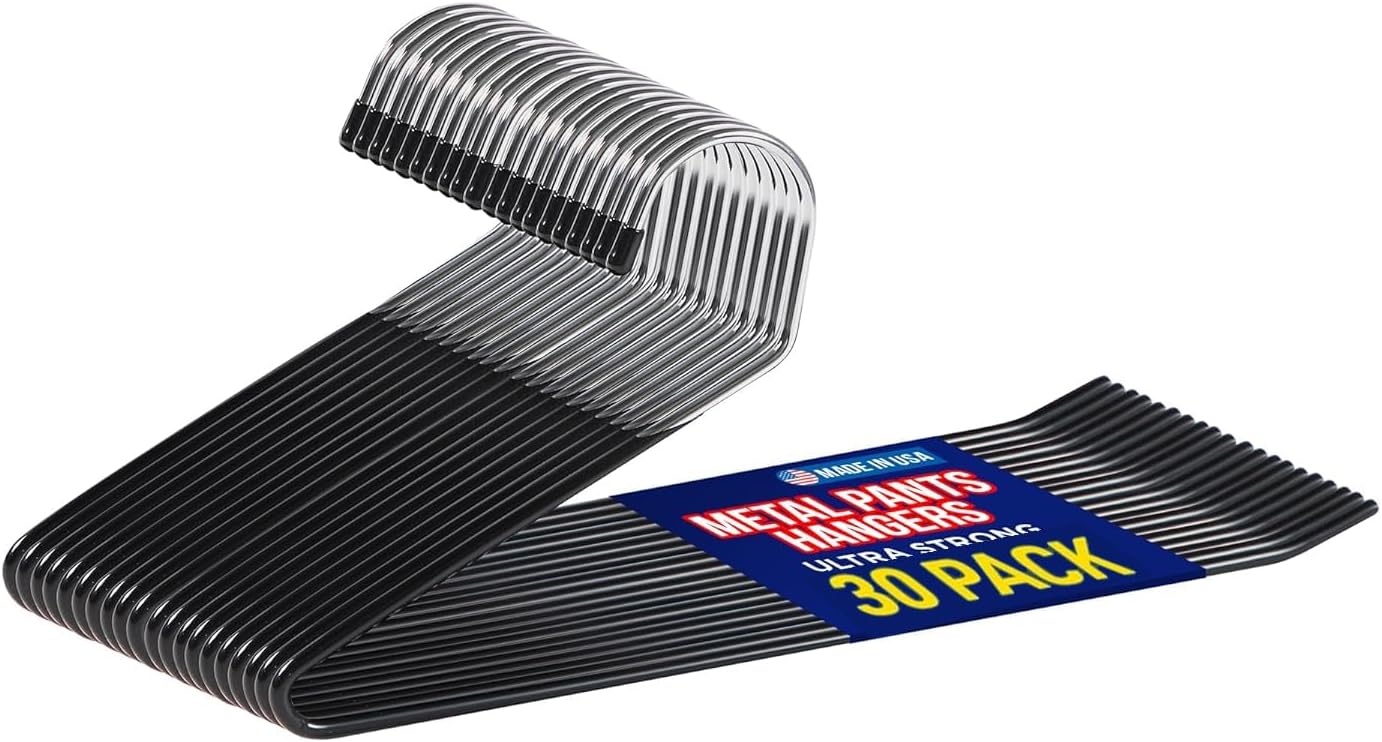Lifemaster Metal Pants Hanger Set - 30 Pieces Elegant Non-Slip Closet Space Saving Hanger Set for Pants, Trouser, Blankets, and Jeans with Rubber Coating and Open Ended Sleek Design - Black