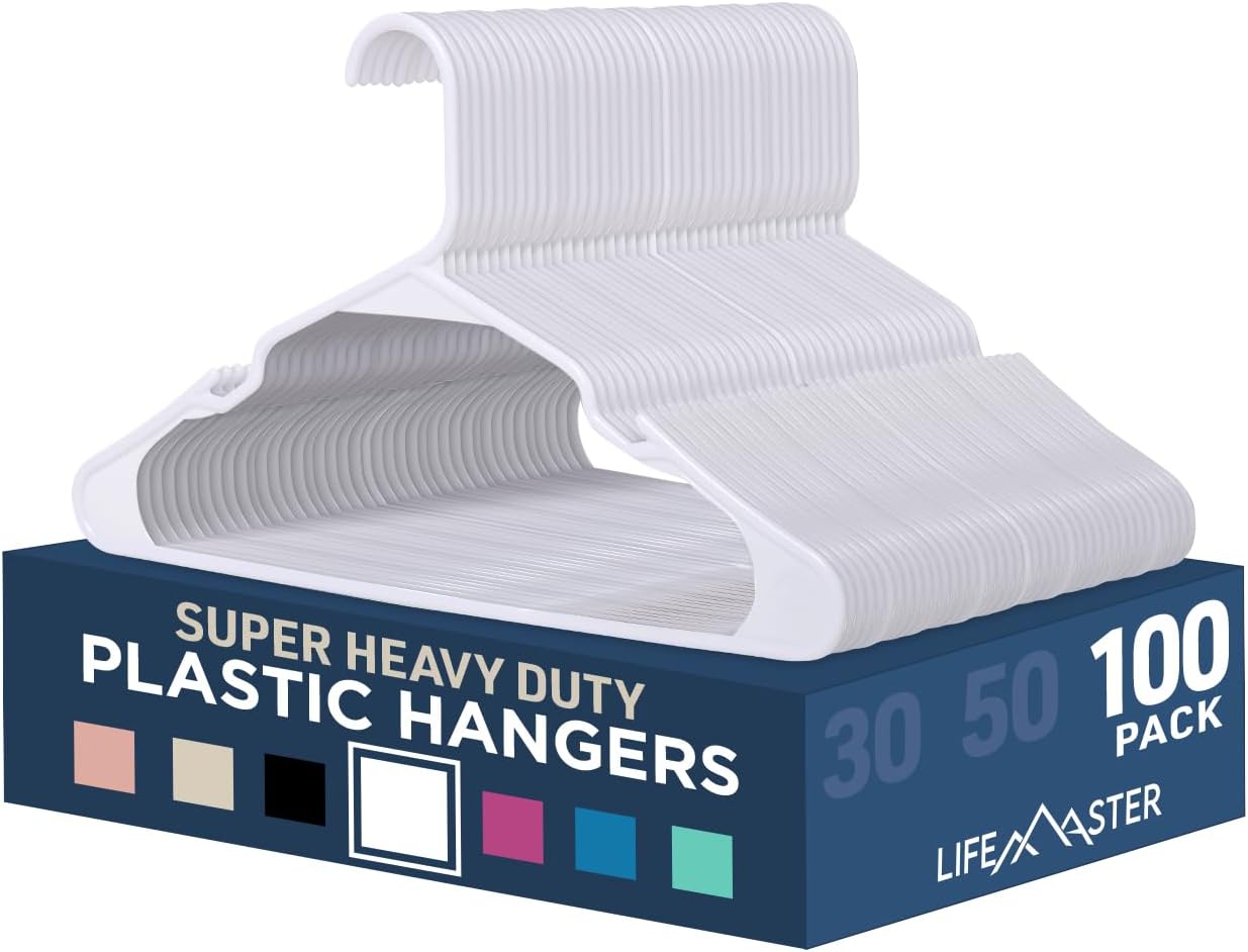 Elevate your closet organization with the LifeMaster 100-Pack of Everyday Use Plastic Clothes Hangers. These hangers are designed with practical features to enhance your wardrobe management. The smart shoulder grooves are a standout feature, providing secure support for slip dresses and bras. This thoughtful design ensures garments stay in place, promoting a tidy closet and easy accessibility. Crafted from lightweight yet durable PP plastic, these hangers strike a perfect balance between convenience and strength. Easy to handle, they offer robust support for your entire wardrobe, ensuring longevity. The slim and sleek design contributes to space-saving closet solutions. Maximize your storage with these hangers, accommodating more clothes while maintaining an organized and efficient closet. Enjoy the convenience of a non-slip functionality that keeps your clothes securely on the hangers. This feature prevents accidental falls and preserves the condition of your garments over time. With a generous pack of 100 hangers, LifeMaster provides a complete solution for organizing your entire wardrobe. From dresses to bras, these versatile and durable hangers deliver comprehensive closet organization. Upgrade your closet with LifeMaster's Everyday Use Plastic Clothes Hangers, combining smart design, lightweight convenience, and a complete solution for your wardrobe needs. Transform your closet into an orderly and accessible space with these high-quality hangers.