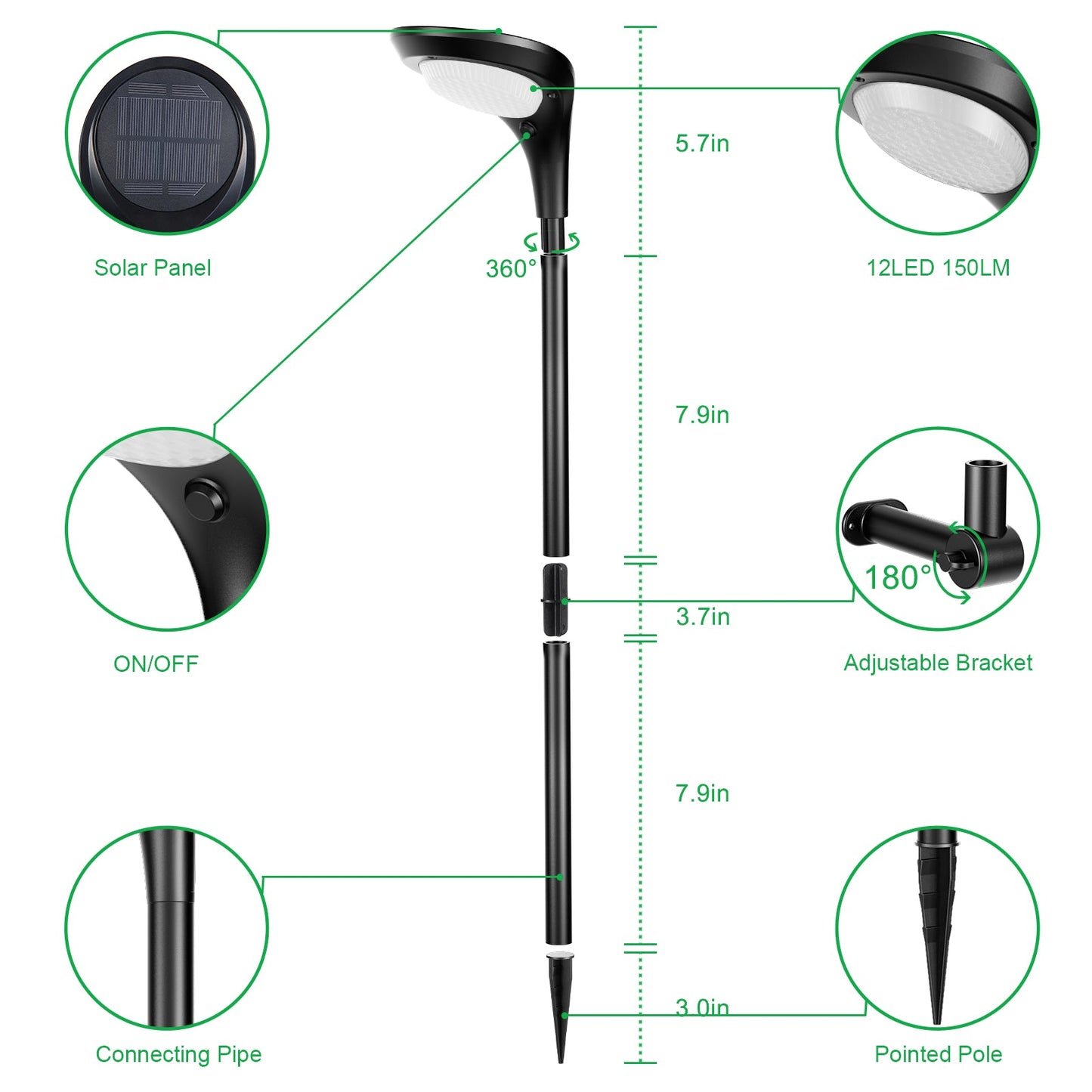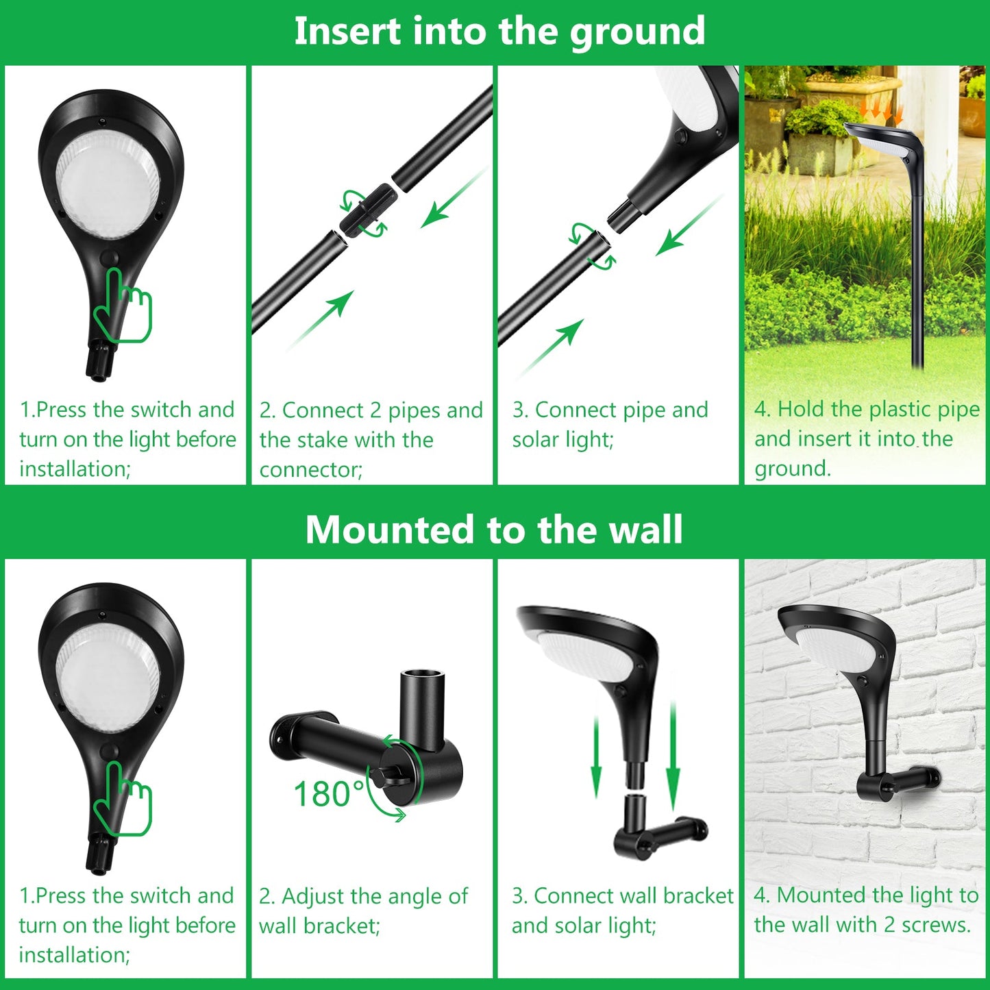 Outdoor solar lawn lights with 2 lighting color modes (Cool White & Warm white).