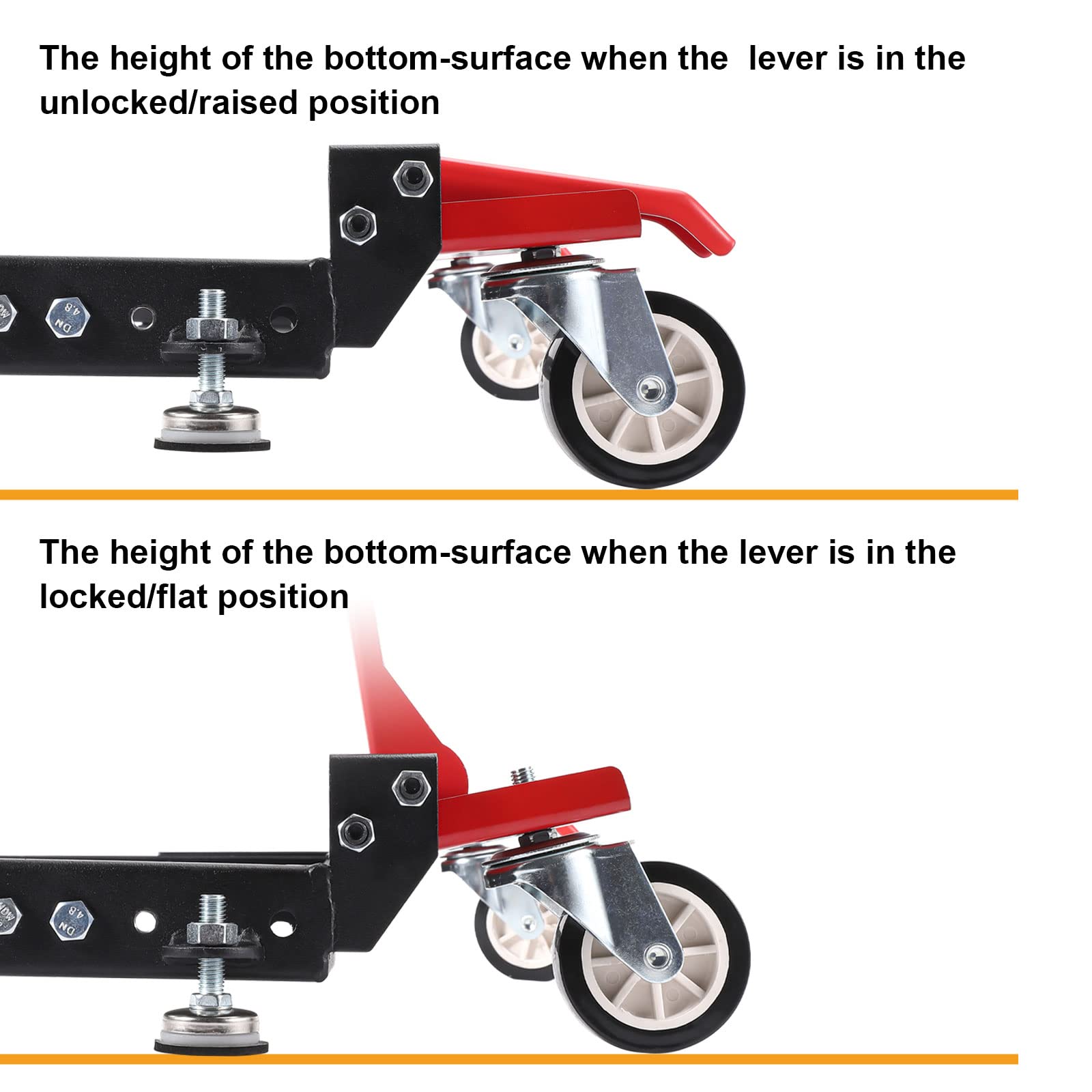 This mobile base kit is multifunctional, it help us move large equipment conveniently and effortless, such as mobilizing refrigerators, washing machines, big cabinets, woodworking equipment, spindle sanders, table saws, etc. It can be used in your home, garage, workshops, and factories.