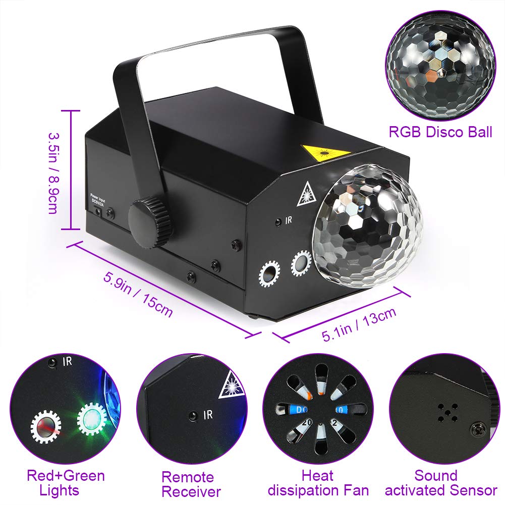 Just plug in and use the Remote Control, you can easily change the modes you need and have your nice party. Powerful voice-activated sensor match with bright and colorful patterns, adding more fun to your party.
