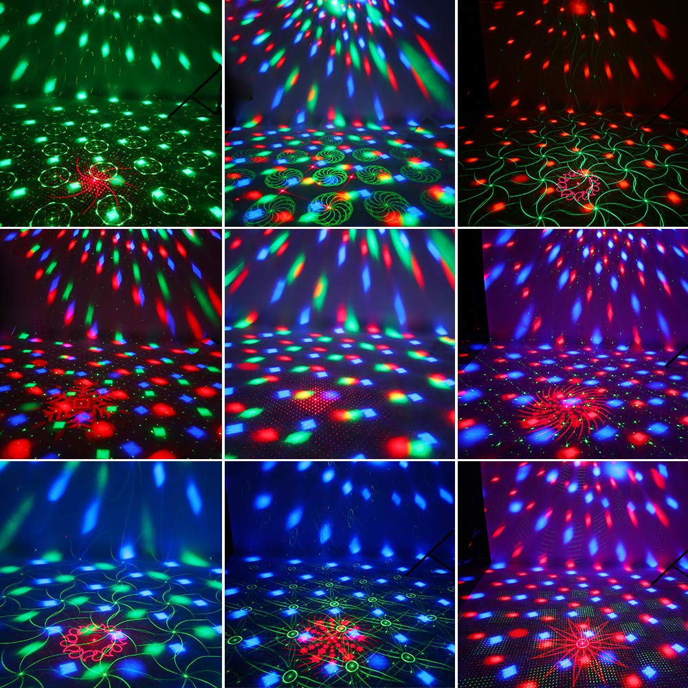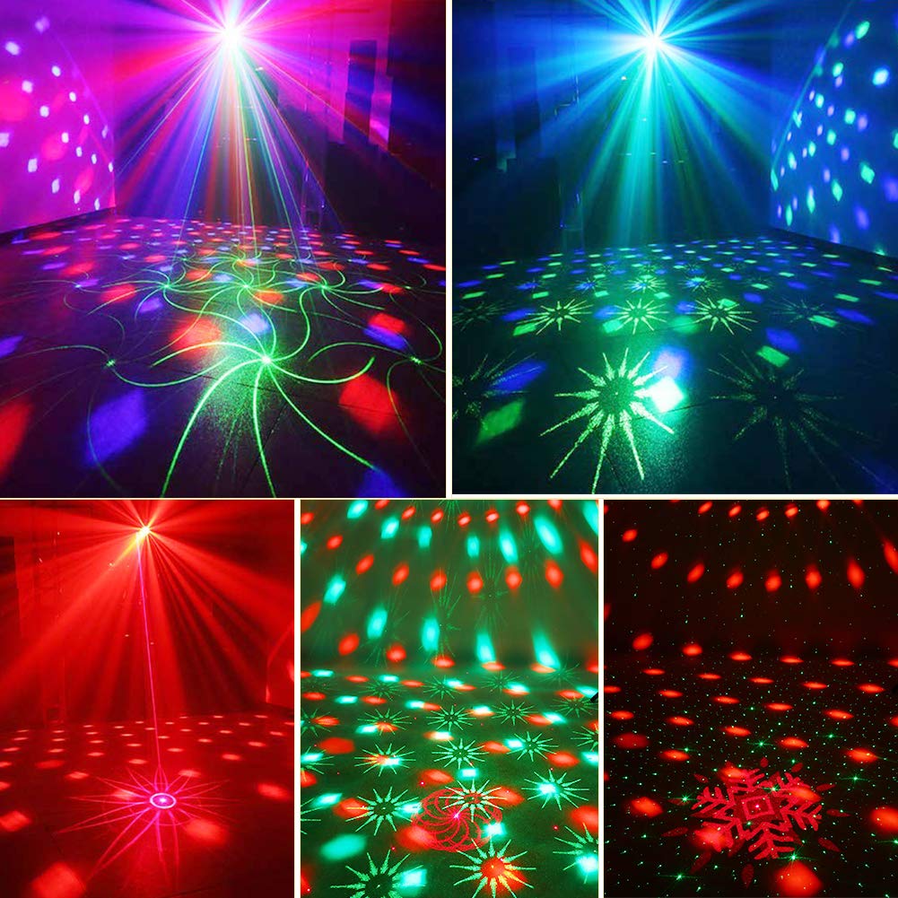 Combine two mainstream home party lights to make one product shows various effects, including dazzling Red & Green Pattern Stage Lights and RGB LED Disco ball lights, which create wonderful party atmosphere.