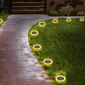 The upgraded solar disk lights are equipped with wider solar panel and 12 durable LED, 1200mAh rechargeable battery, which means producing more light for your path. It can illuminate for 8-10 hours with 4-6 hours of charging.