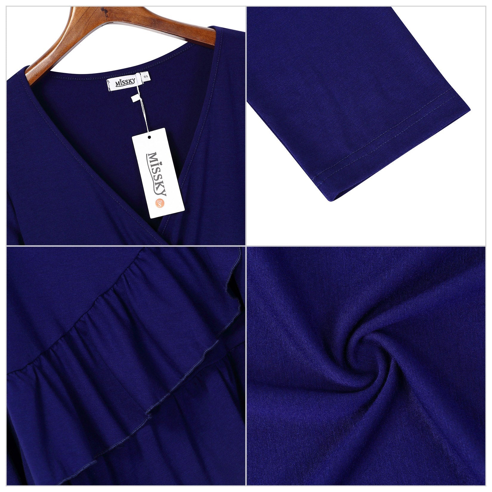 YESFASHION Women's Wrap Dress 3/4 Sleeve Ruffle Midi Dress Blue