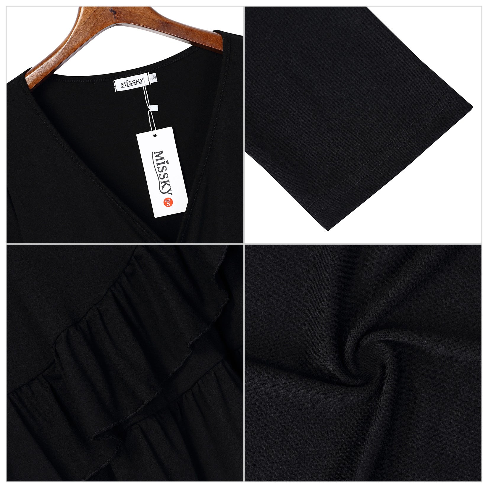 YESFASHION Women's Wrap Dress 3/4 Sleeve Ruffle Midi V Neck Dress