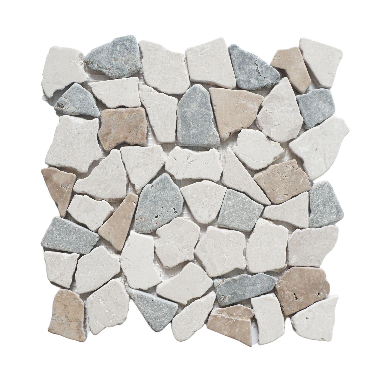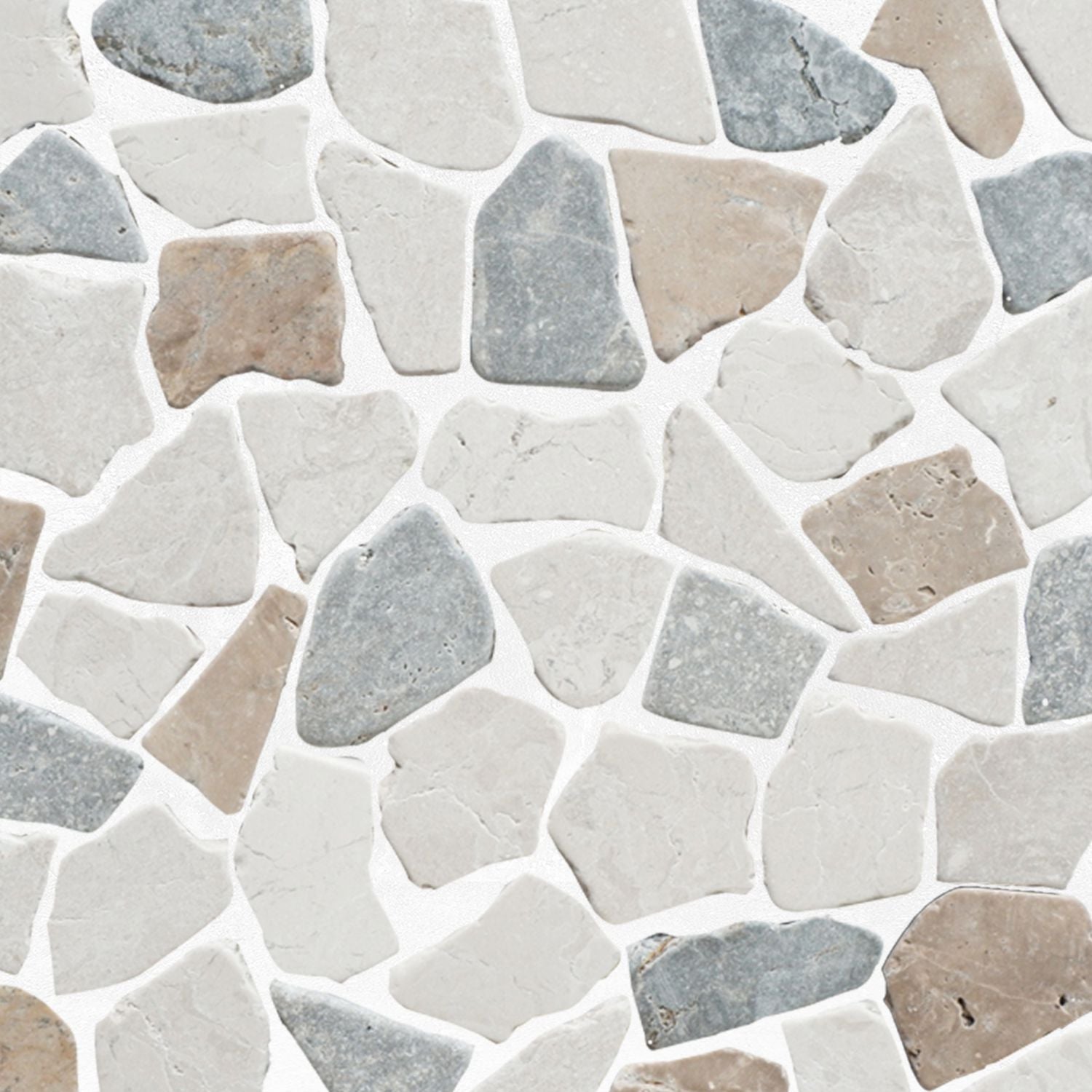 Marble mosaic tile made from irregular stones with touchable texture. With its organic, au natural look, it’s perfect to use on shower floors, decks, or pools.