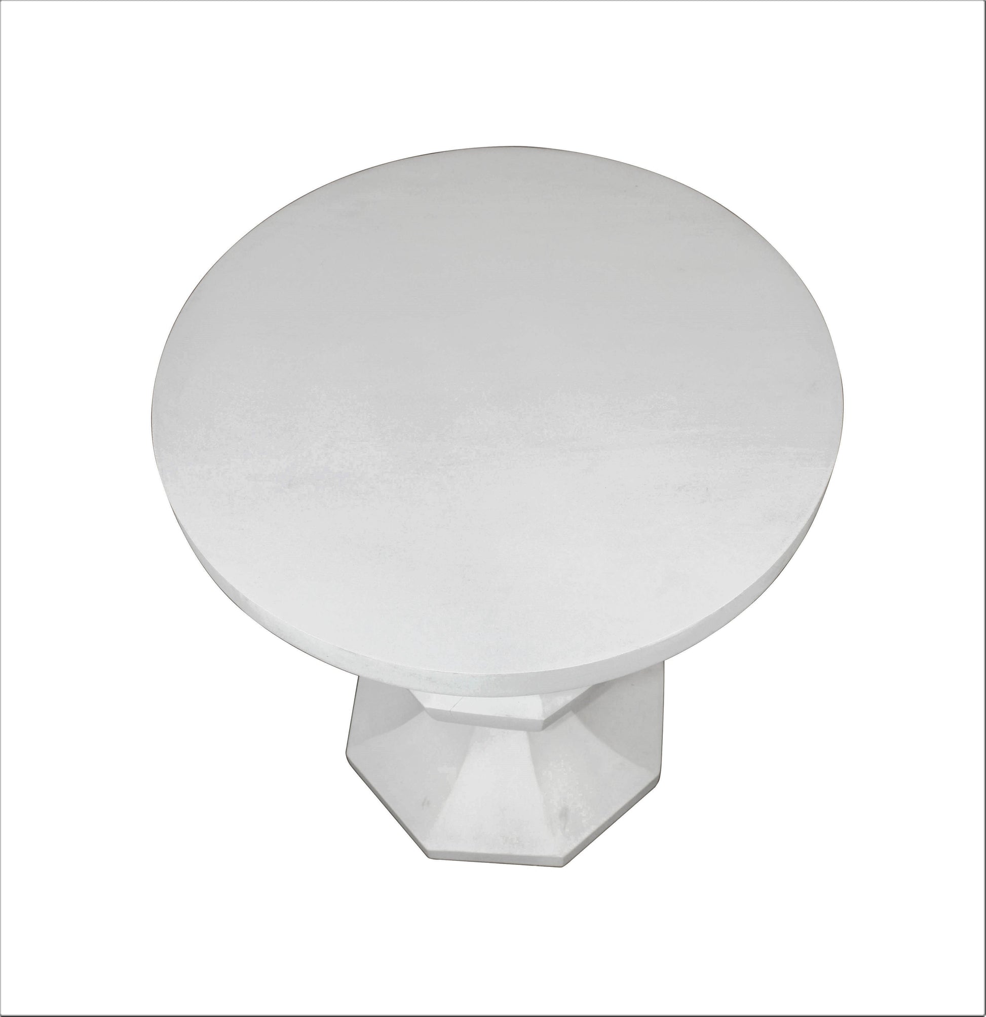 Side table has a sturdy base made of solid, sustainable mango wood. Octagonal shaped middle section and base. Clean white hand-painted finish.