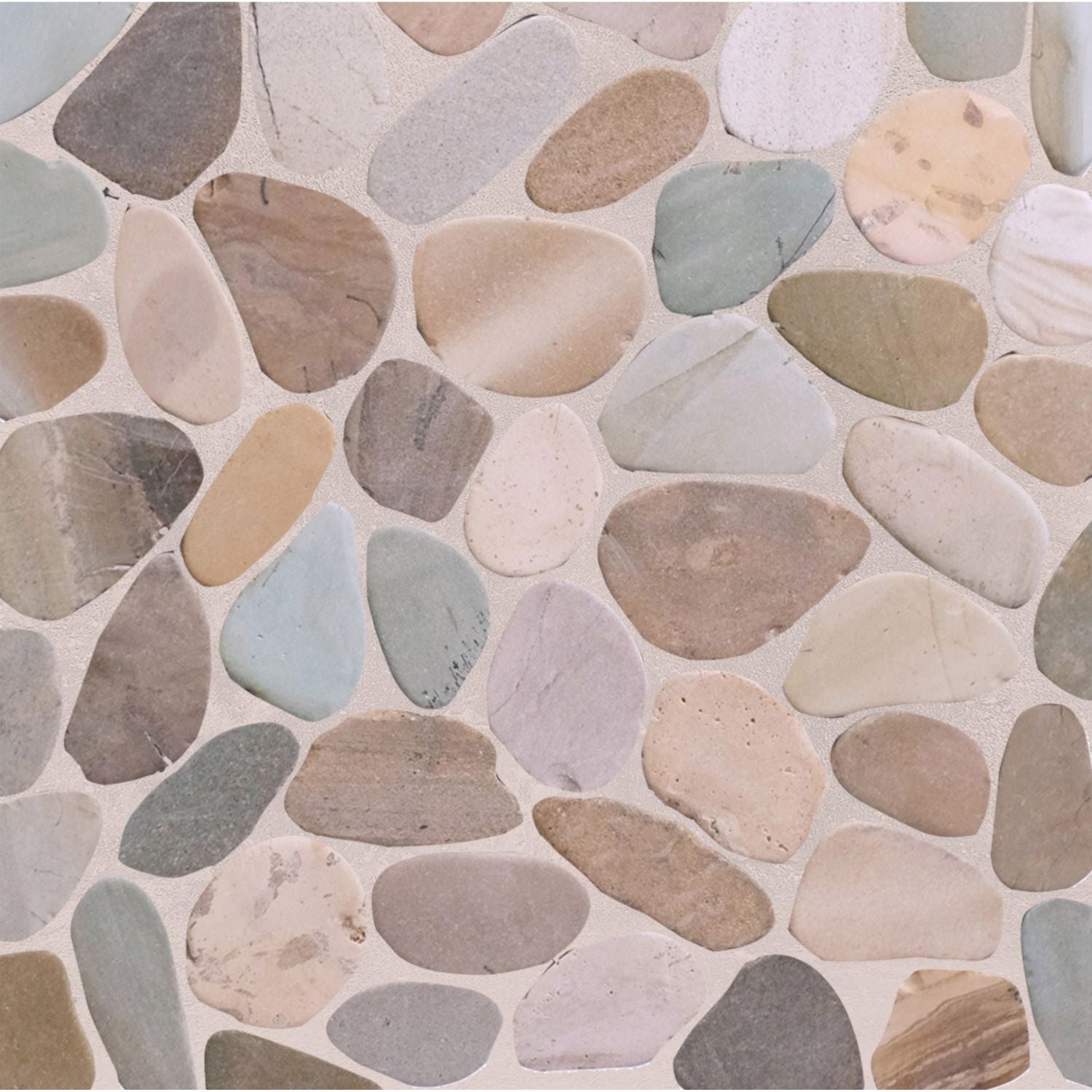 This Slice Pebble Tile is interlocking tiles made from natural stone pebbles that have been sliced on the front and back to create a flat surface.This product gives off a cobblestone feeling with a touchable texture. With its organic, and natural look, it’s perfect to use on shower floors, decks, or pools.