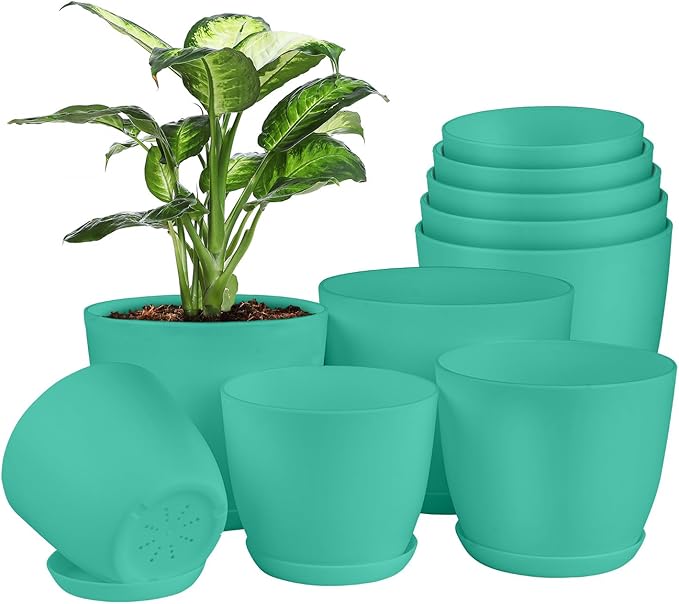 Planter Pots with Drainage Holes - Lightweight, Durable, and Space-Saving Pots for Indoor and Outdoor - Versatile Functionality, Simple Modern Design, Set of 10 Plastic Planter Pots - Aqua