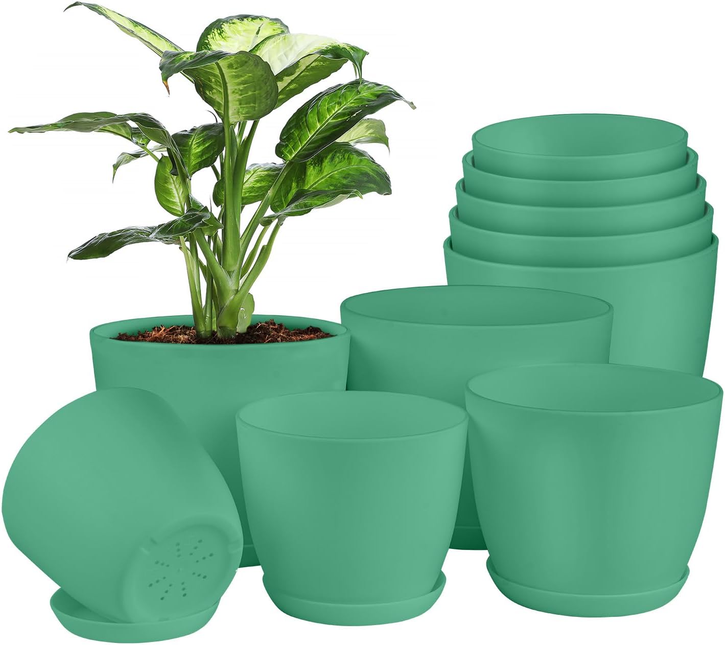 Planter Pots with Drainage Holes - Lightweight, Durable, & Space-Saving Pots for Indoor and Outdoor - Versatile Functionality, Simple Modern Design, Set of 10 Plastic Planter Pots Mint