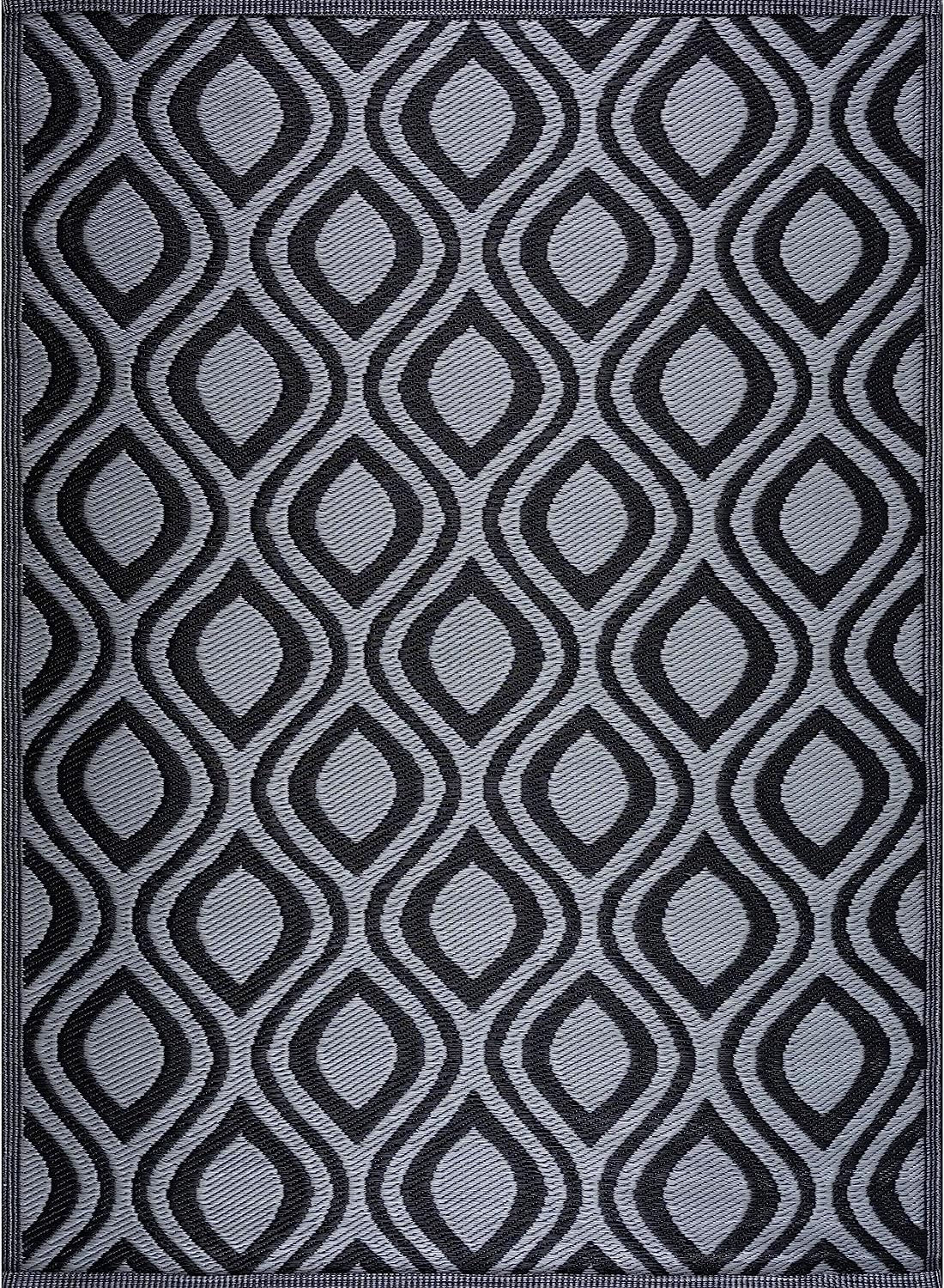 Playa Outdoor Rug - Crease-Free Recycled Plastic Floor Mat for Patio, Camping, Beach, Balcony, Porch, Deck - Weather, Water, Stain, Lightweight, Fade and UV Resistant - Venice- Black & Gray