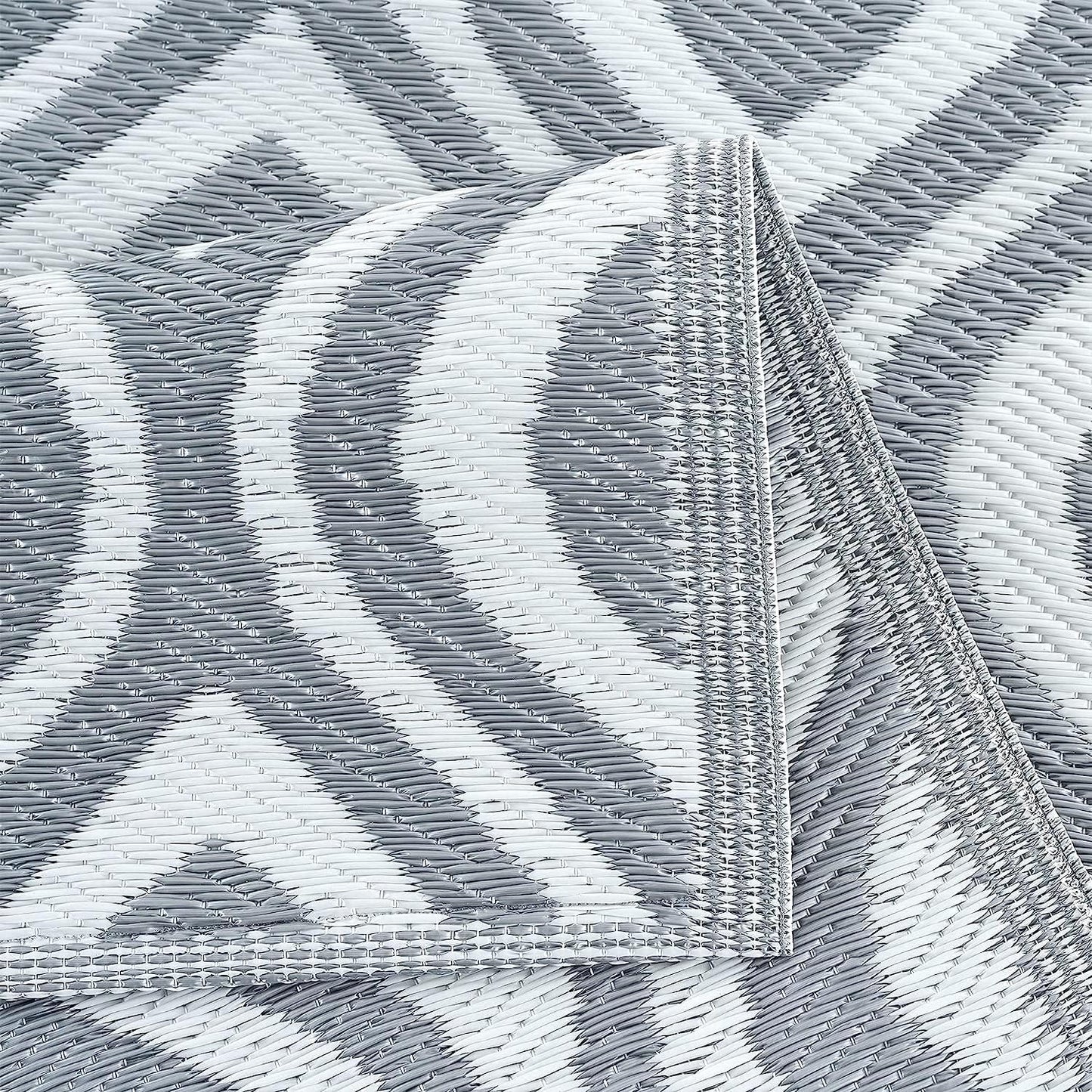 Playa Outdoor Rug - Crease-Free Recycled Plastic Floor Mat for Patio, Camping, Beach, Balcony, Porch, Deck - Weather, Water, Stain, Lightweight, Fade and UV Resistant - Venice- Gray & White