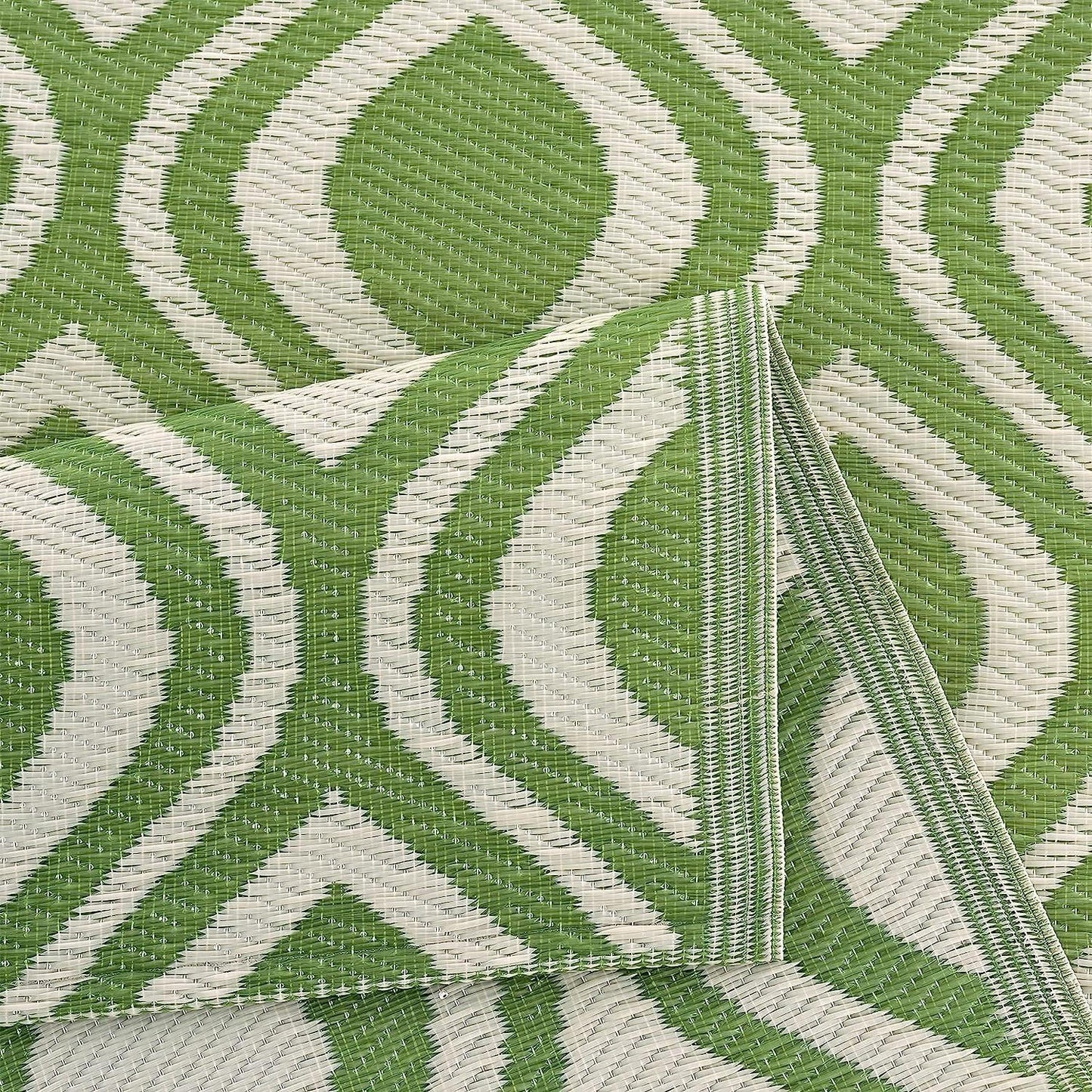 Playa Outdoor Rug - Crease-Free Recycled Plastic Floor Mat for Patio, Camping, Beach, Balcony, Porch, Deck - Weather, Water, Stain, Lightweight, Fade and UV Resistant - Venice- Green & Creme. |
