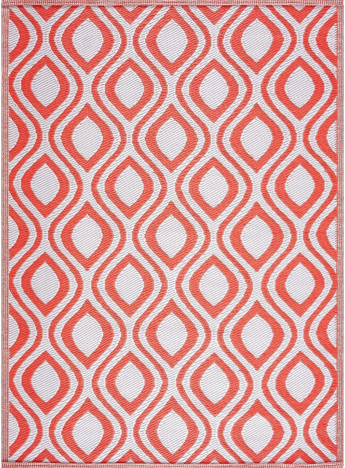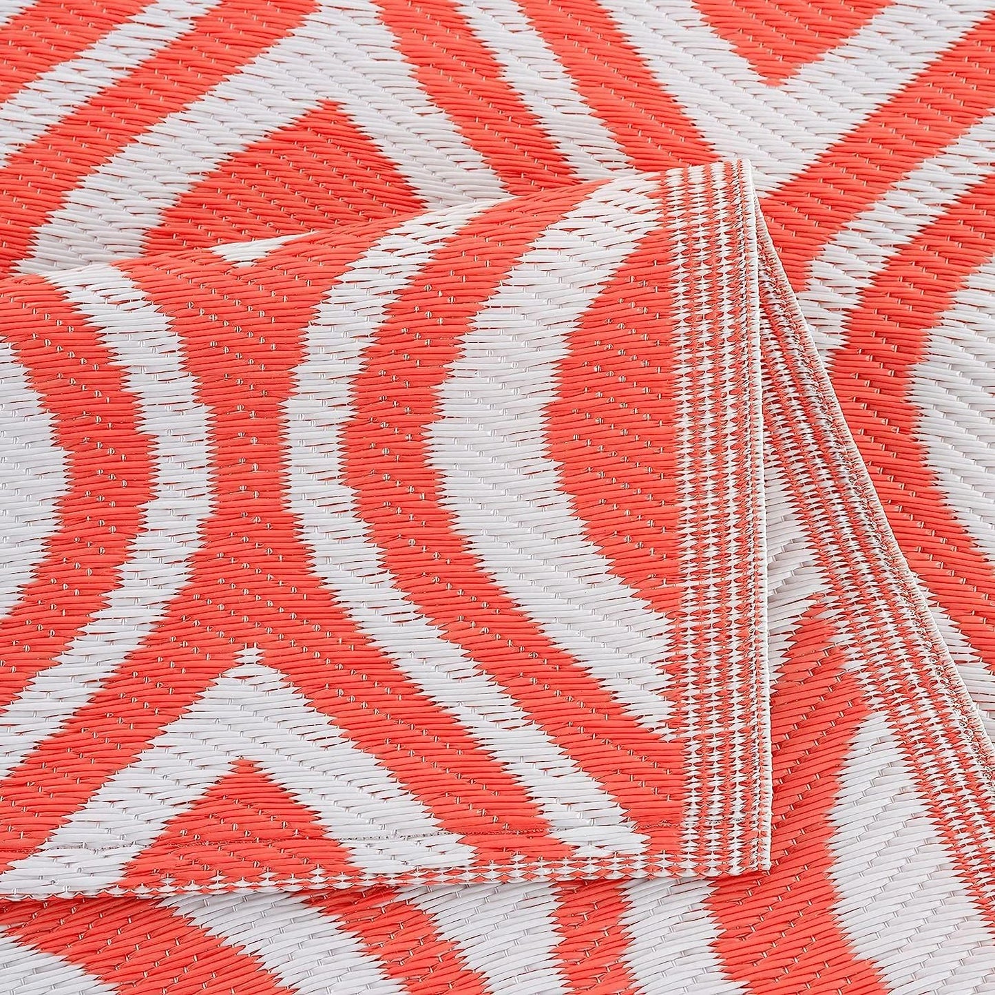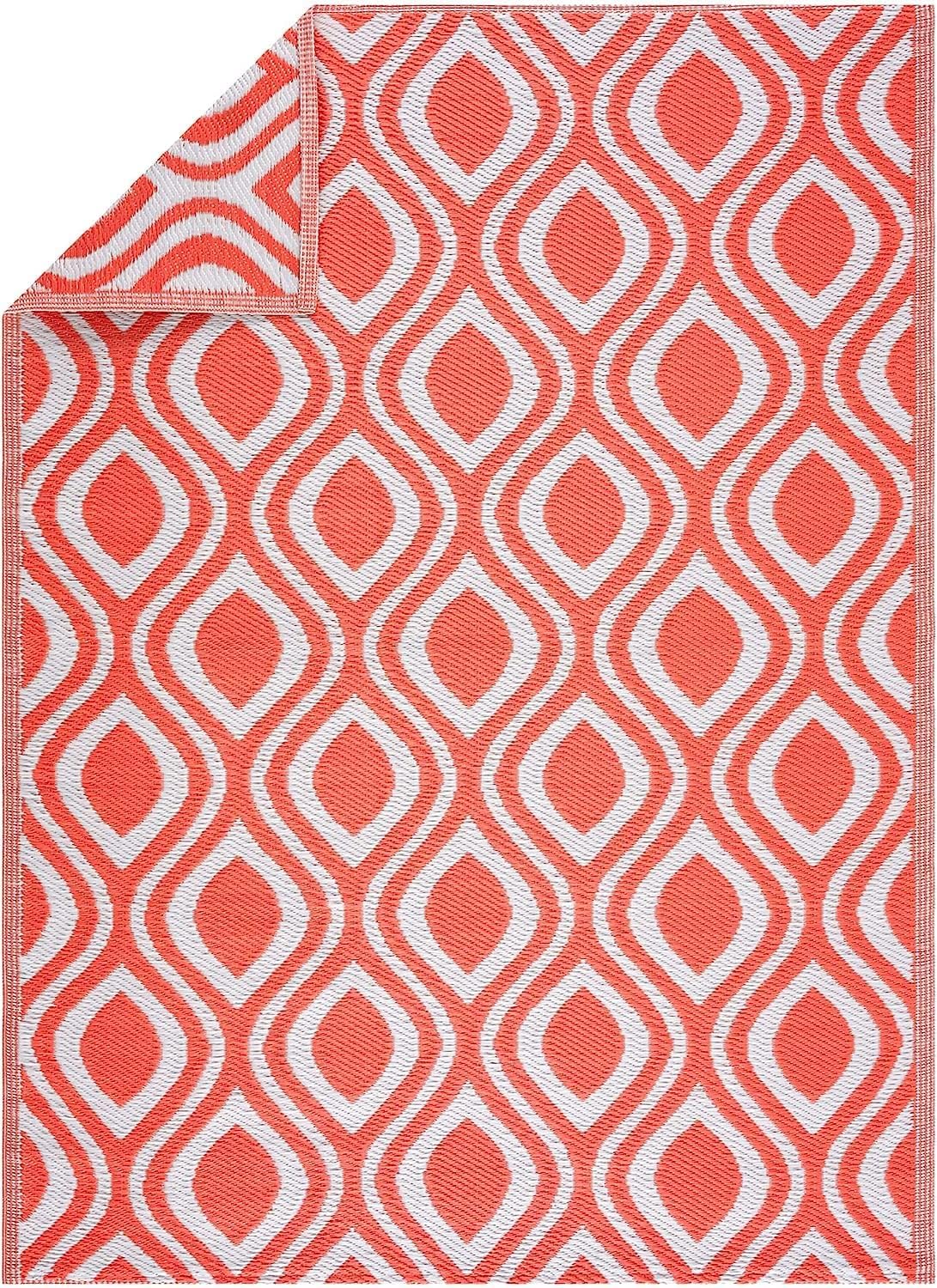 Playa Outdoor Rug - Crease-Free Recycled Plastic Floor Mat for Patio, Camping, Beach, Balcony, Porch, Deck - Weather, Water, Stain, Lightweight, Fade and UV Resistant - Venice- Orange & White. |