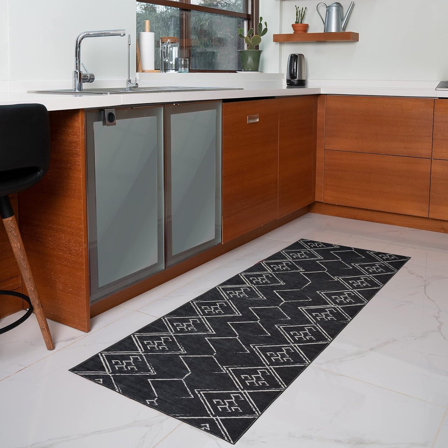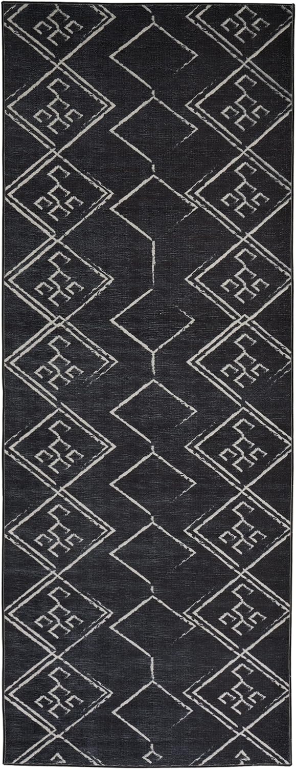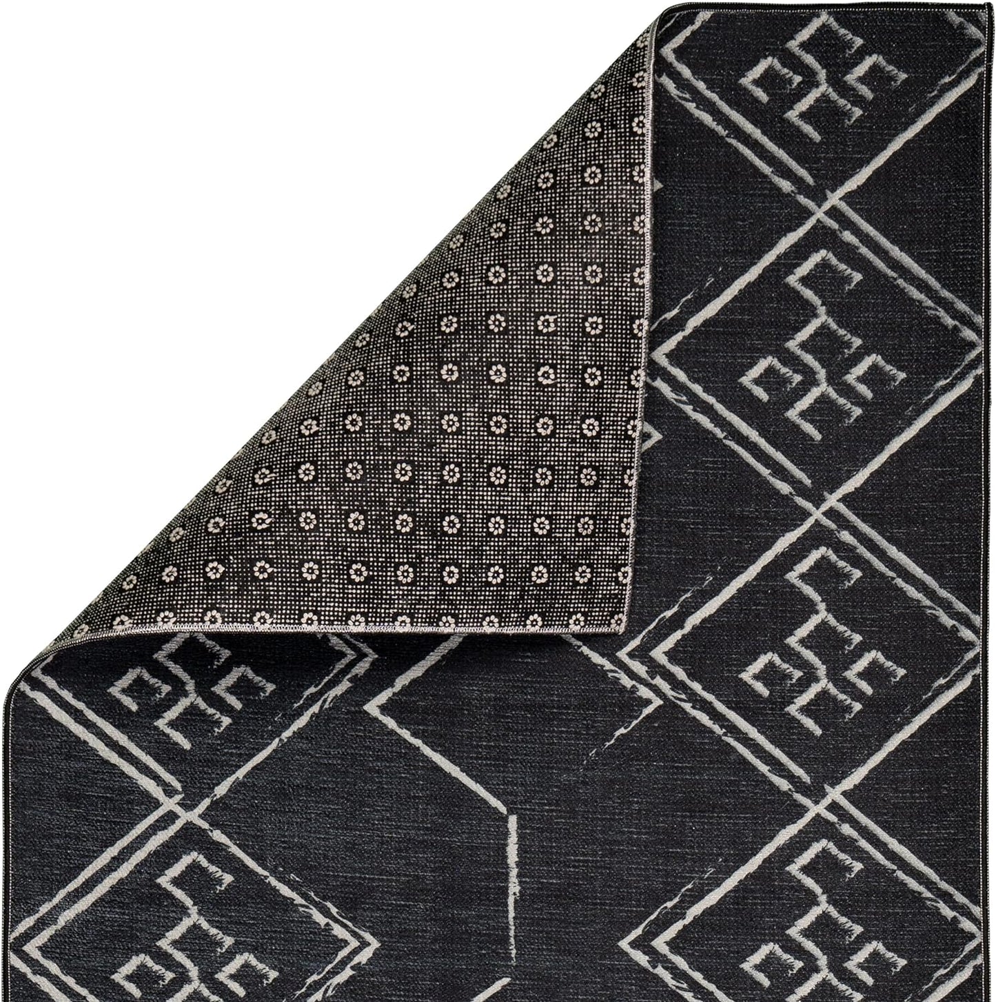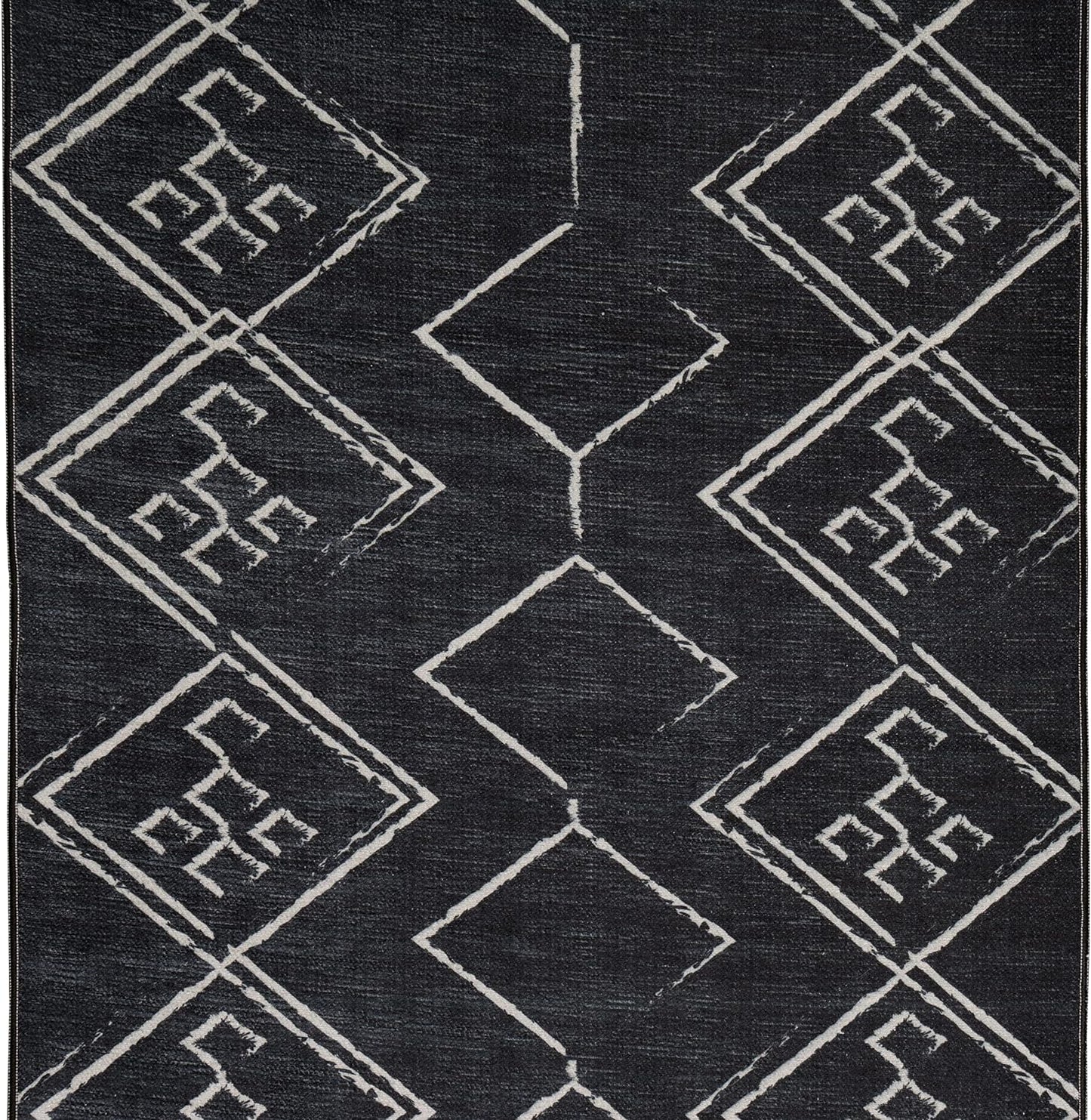 Playa Rug Machine Washable Area Rug With Non Slip Backing - Stain Resistant - Eco Friendly - Family and Pet Friendly - Aspen Tribal Moroccan Bohemian Black&Creme Design