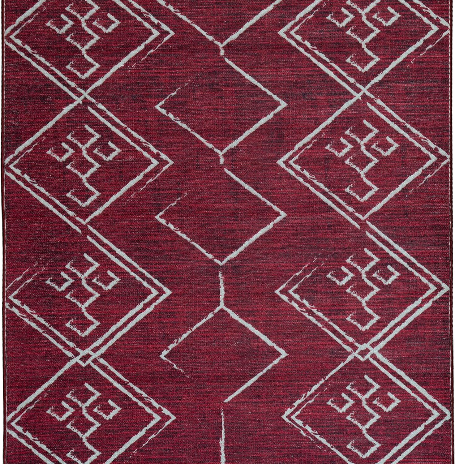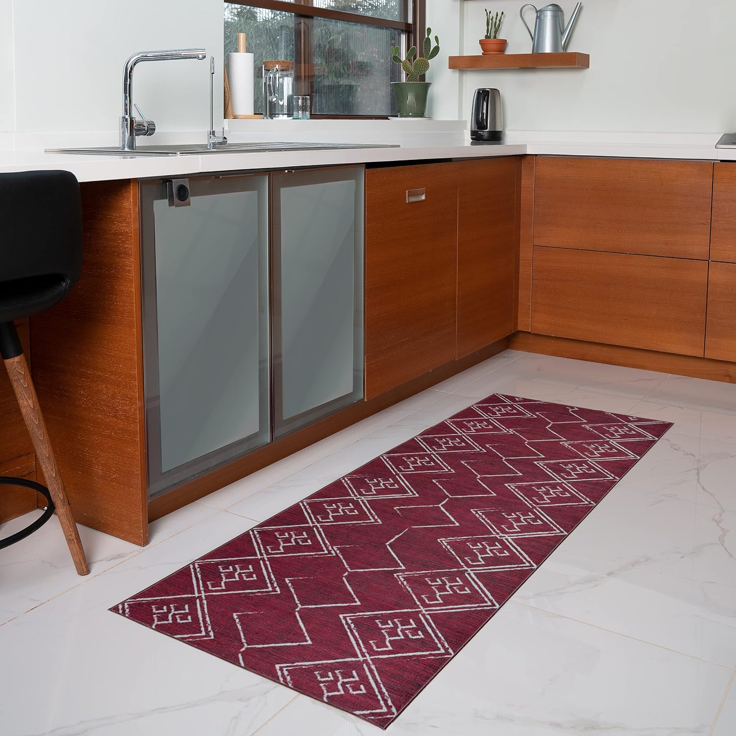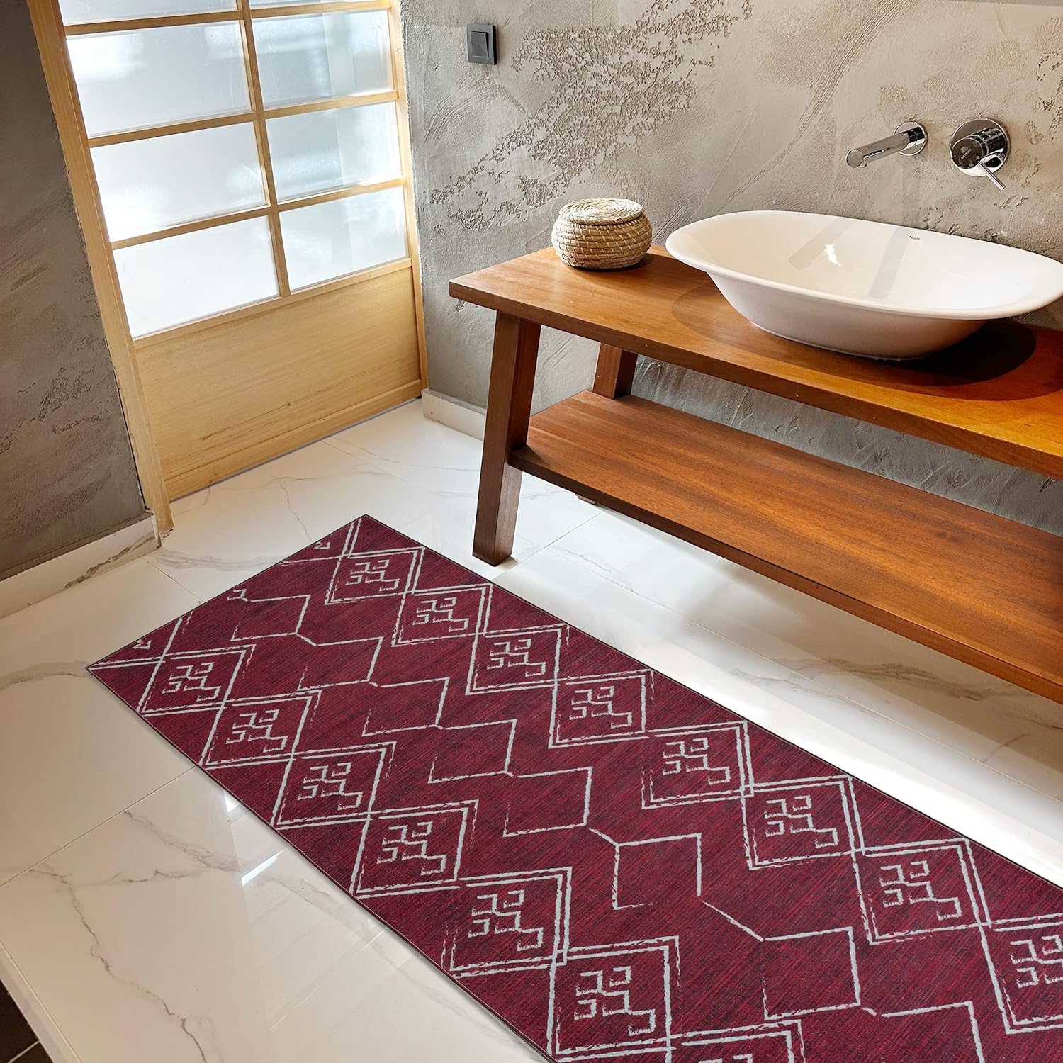 Playa Rug Machine Washable Area Rug With Non Slip Backing - Stain Resistant - Eco Friendly - Family and Pet Friendly - Aspen Tribal Moroccan Bohemian Burgundy&Creme Design