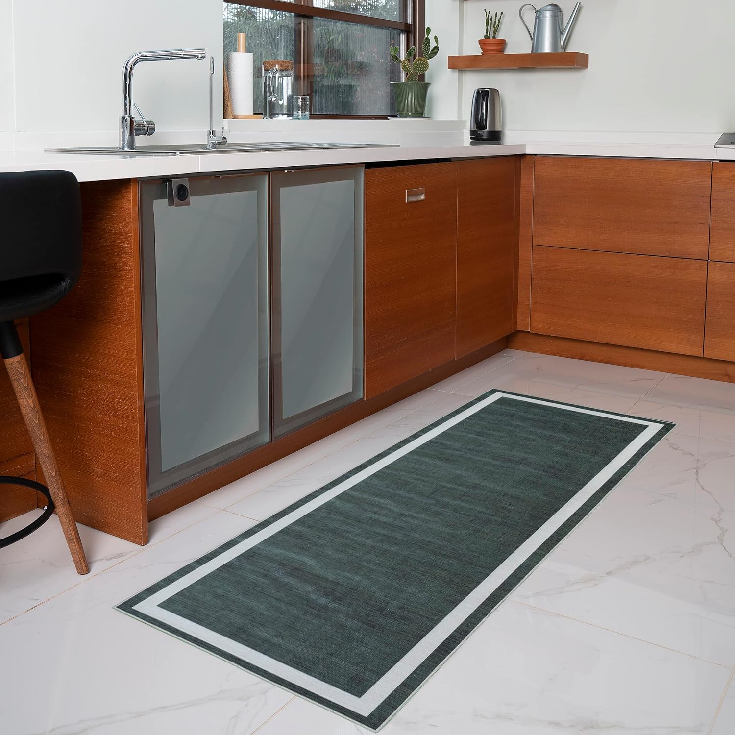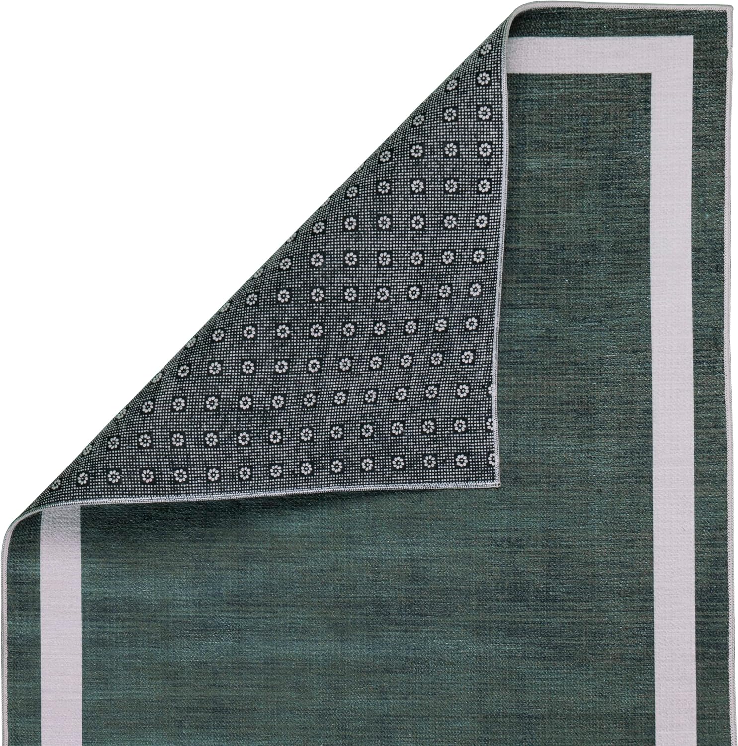 Playa Rug Machine Washable Area Rug With Non Slip Backing - Stain Resistant - Eco Friendly - Family and Pet Friendly - Everest Geometric Modern Bordered Green&Creme Design