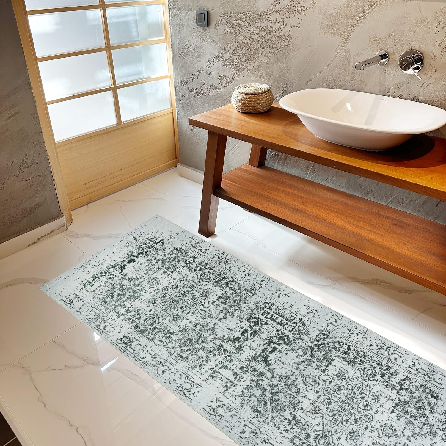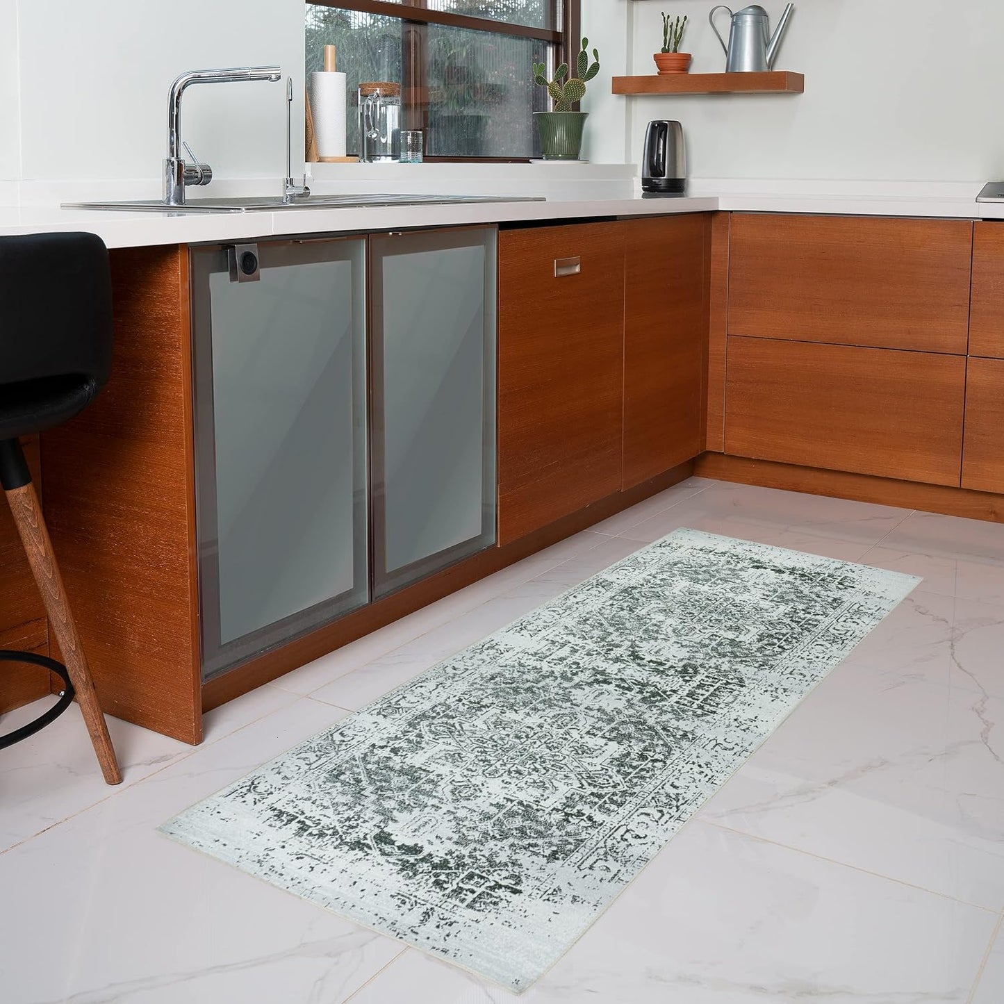 Playa Rug Machine Washable Area Rug With Non Slip Backing - Stain Resistant - Eco Friendly - Family and Pet Friendly - Himalayas Traditional Floral Abstract Green&Creme Design