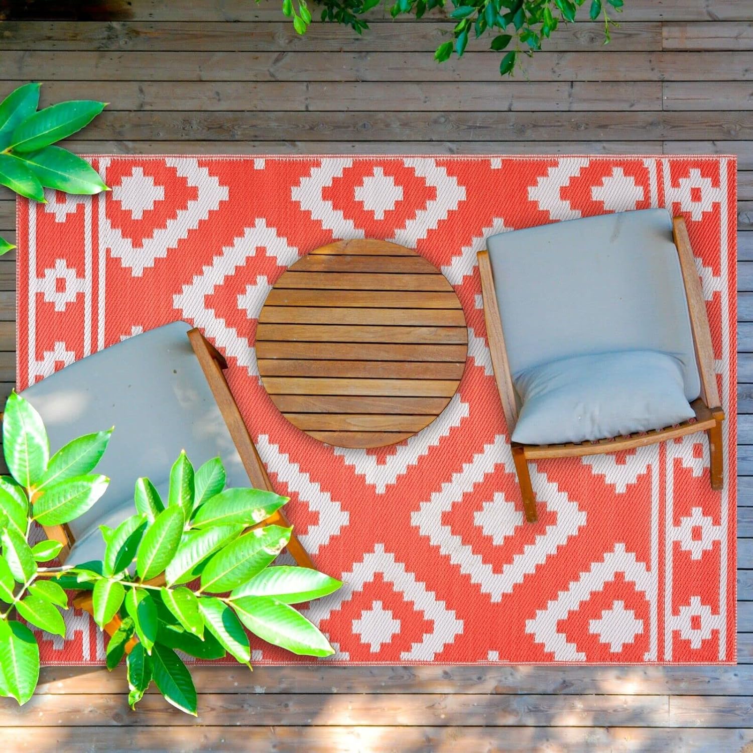 Playa Outdoor Rug - Crease-Free Recycled Plastic Floor Mat for Patio, Camping, Beach, Balcony, Porch, Deck - Weather, Water, Stain, Lightweight, Fade and UV Resistant - Milan- Orange & White (6'x9')