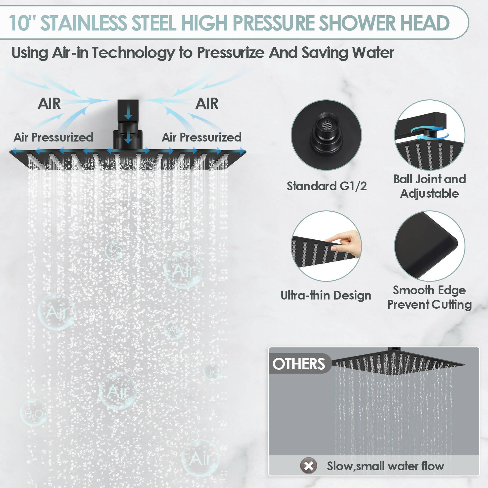 RainfallCascade 10” High-Pressure Shower Faucet, Wall Mount, Rough in-Valve, 2.5 GPM