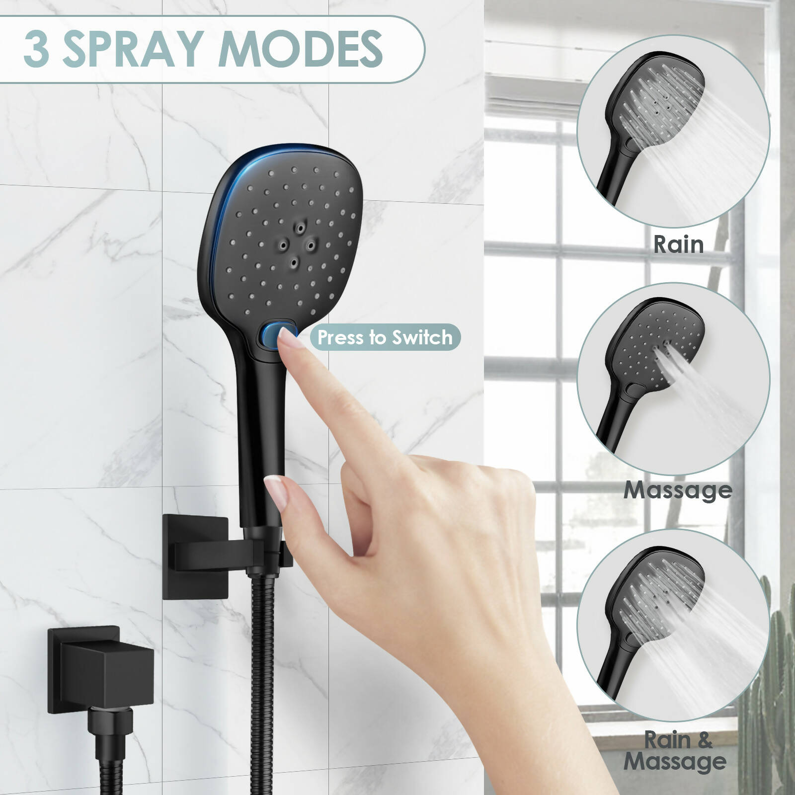- 3-spray Mode Hand Shower: Attached with a 59-inch stretchable metal hose, this hand shower provides you with three spray modes, rain shower, power pulse massage, and rain shower & massage, allowing you to clean specific areas where an overhead shower is hard to get to. Besides, you can use it to bathe your children and pets or clean the bathroom after showering. It is easy to pick up and put away.
