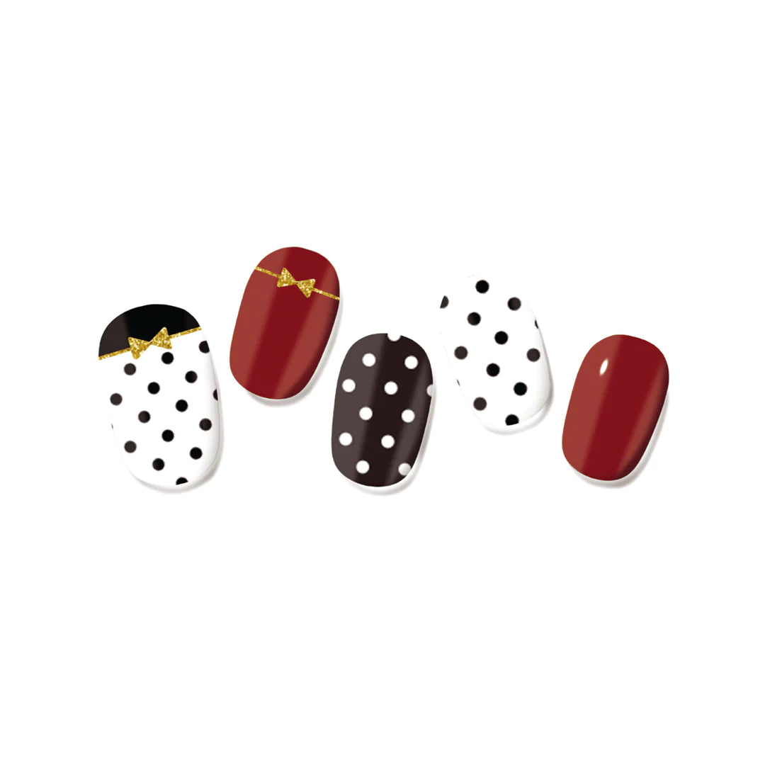 You’ll be brimming with sophistication when you apply our Prim Polka Dots nail set. This iconic play on prints and solids is oh-so-cute. It features a dashing red color for a daring a bright statement, while black and white polka dots give this set a look that’s both eye-catching and classic. The set is wrapped together perfectly with gold foil ribbons.
