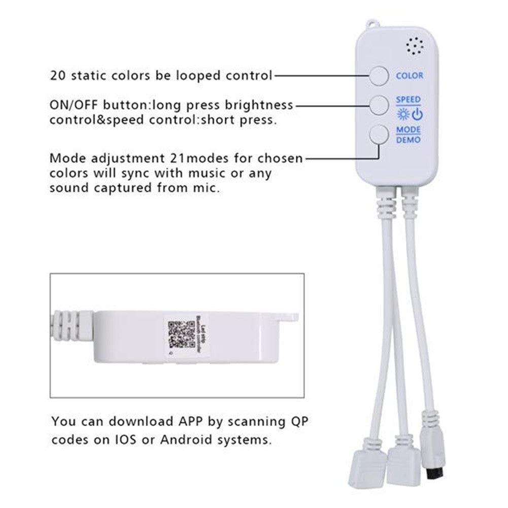 APP Control & Mic Mode: Controlling the LED strip lights via APP, remote control and controller. With the APP, you can freely choose to control 16 million colors. The bluetooth strip light has a smart music mode, built-in sensitivity adjustable microphone, which creating romance, relaxation, party ambiance with Music, lights color will change with the music beats or your microphone.