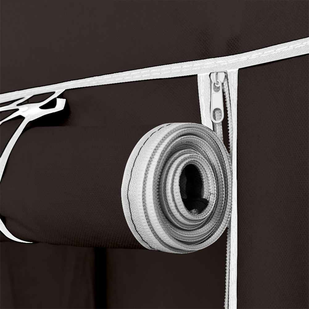 Each shelf holds up to 3 or 4 pairs of full-size shoes; Side pockets for shoe brushes, keys, toys or other sundries. With zippered cover, this elegant shoe cabinet will keep the dust away and when guests coming, you can just zip down the cover to keep your shoes unviewable.