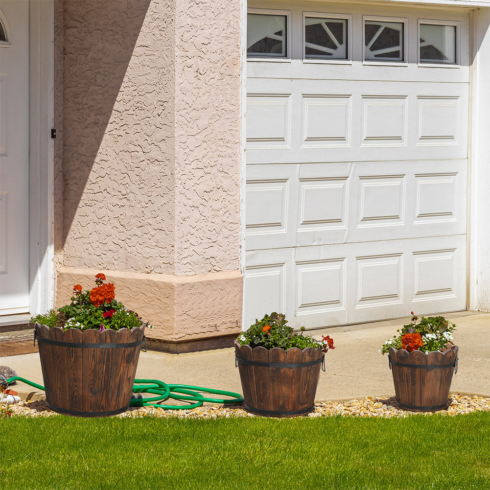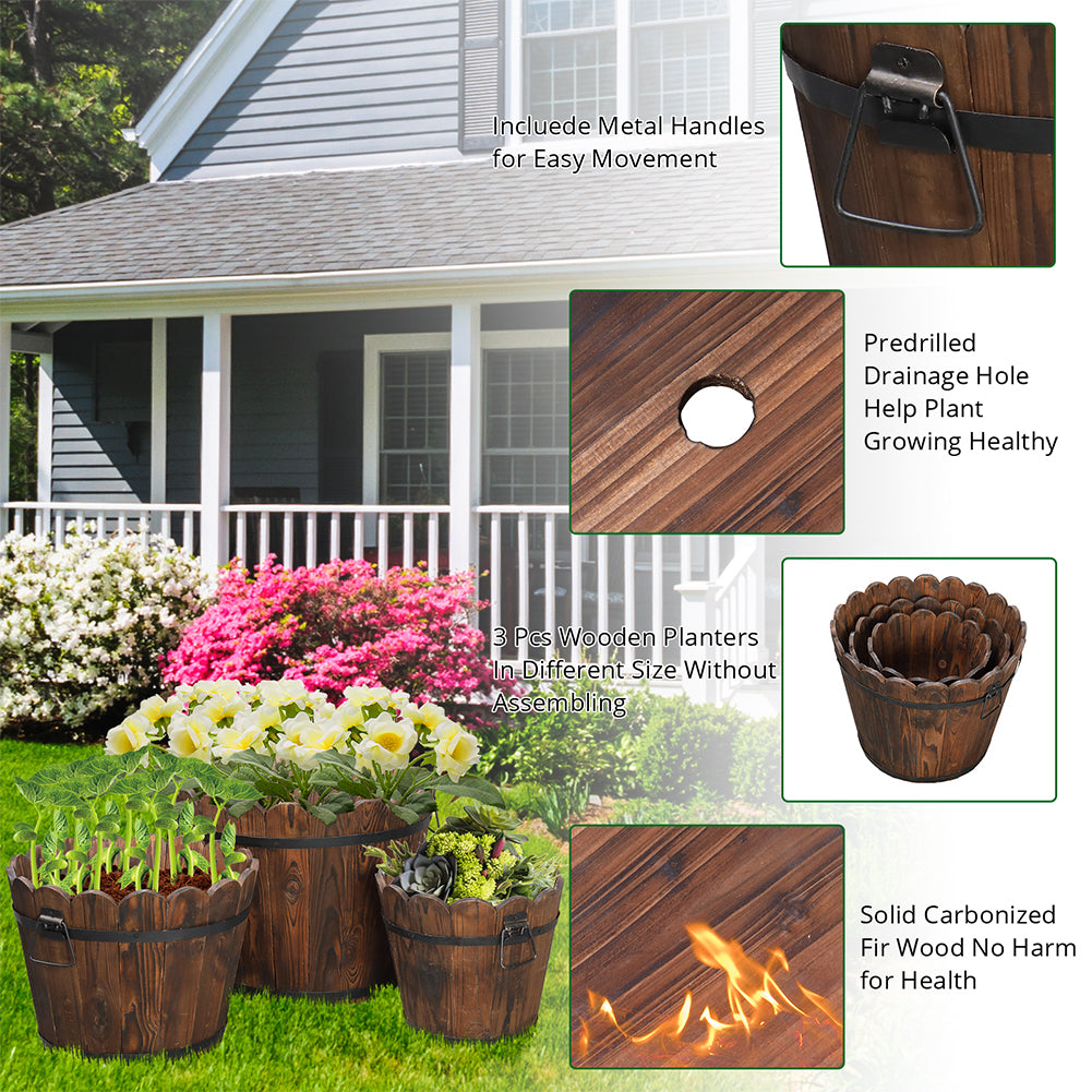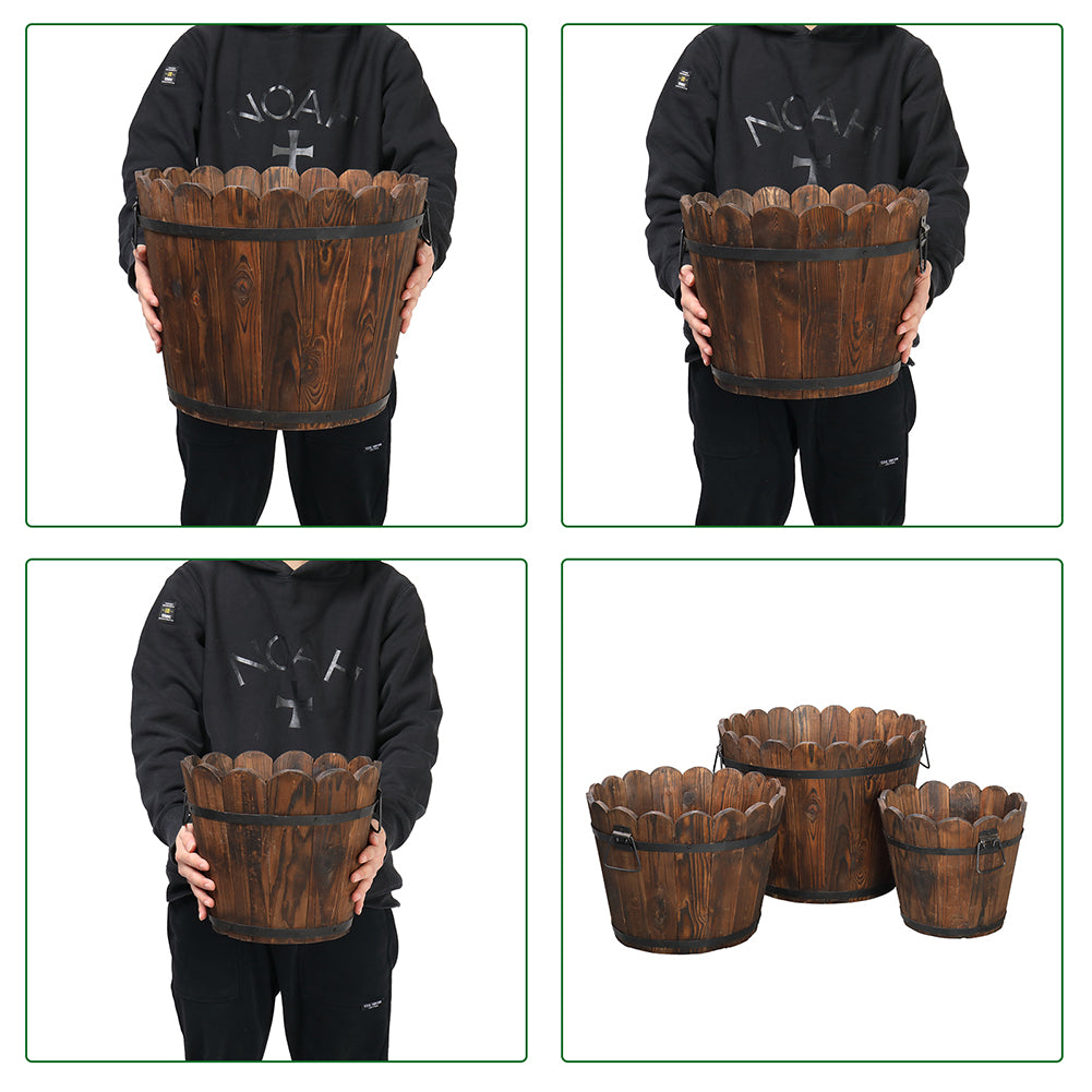 RONSHIN 3PCS Planting Pots Retro Style Outdoor Reinforced Flower-Shaped Wooden Barrels