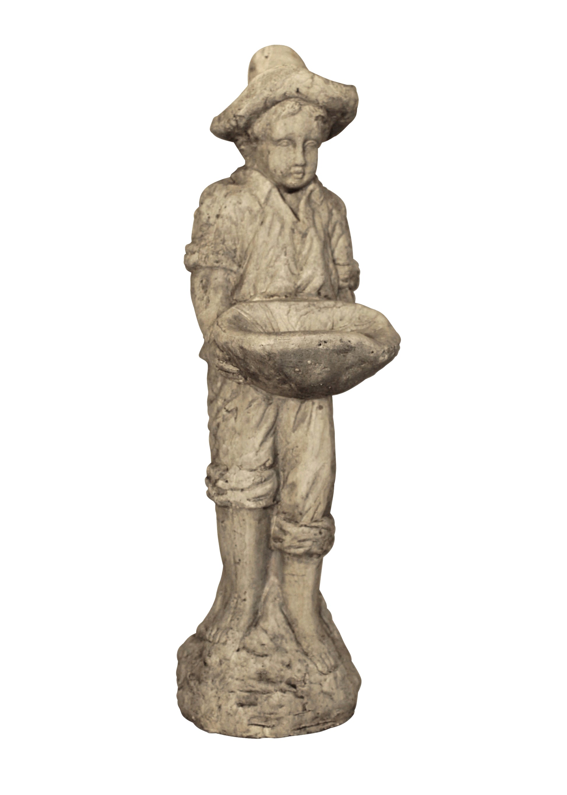 Vintage inspired French garden statue. Made of terracotta with a "vintage stone" finish. May be used outdoors but the color may change.