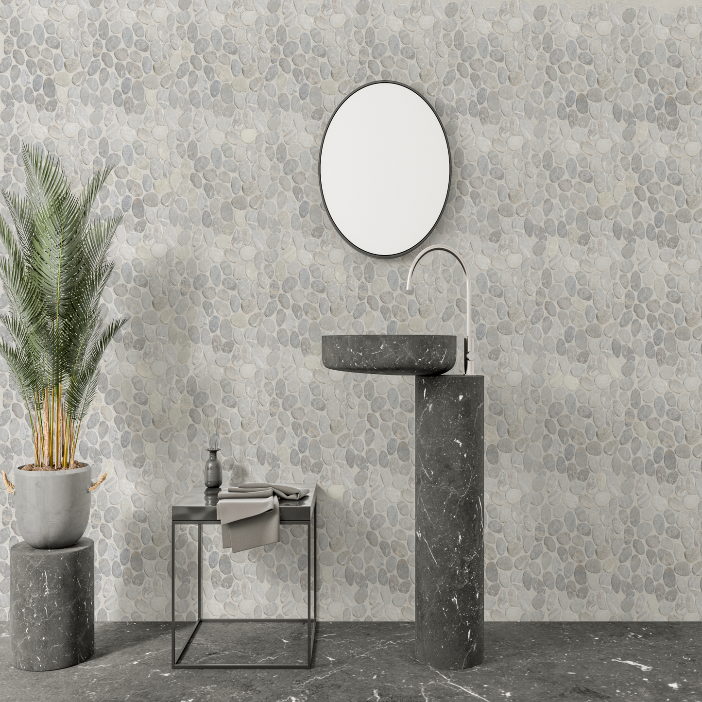 Smoke Grey Sliced Pebble Mosaic Wall & Floor Tile