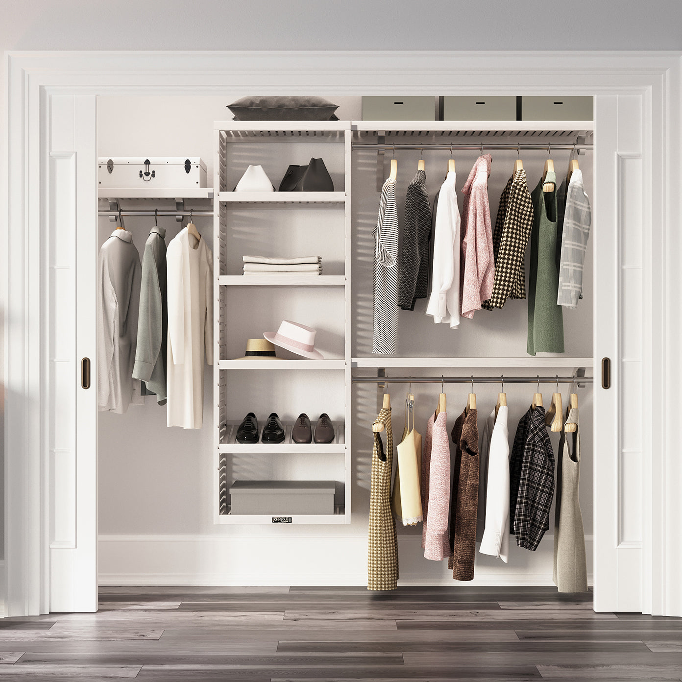 Discover the beauty of real wood with the 100% Solid Wood Closet Organizer from John Louis Home. This versatile system is the perfect solution for both reach-in and walk-in closet types. Configure it to fit your space and add accessories to meet your needs for a custom look that is both beautiful and inspired.