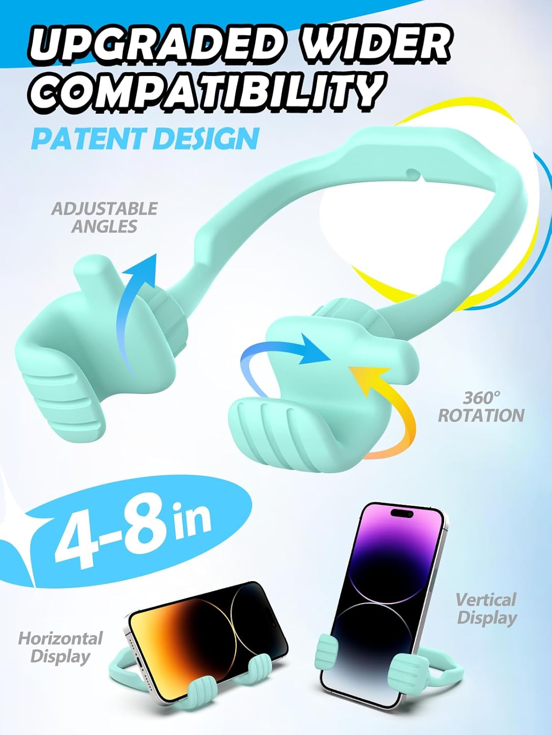 - Upgraded 360° Flexible Adjustable Universal Compatibility: The thumb-up phone holder boasts a unique universal head that can rotate 360°, allowing for both horizontal and vertical placement; Adjust the phone's tilt angle by moving the thumbs up or down, accommodating most phones and tablets; With its thickened and widened design, this versatile phone stand unlocks numerous holder methods, adaptable to most devices & phone cases; Adjust various angles at will to obtain the best perspective
