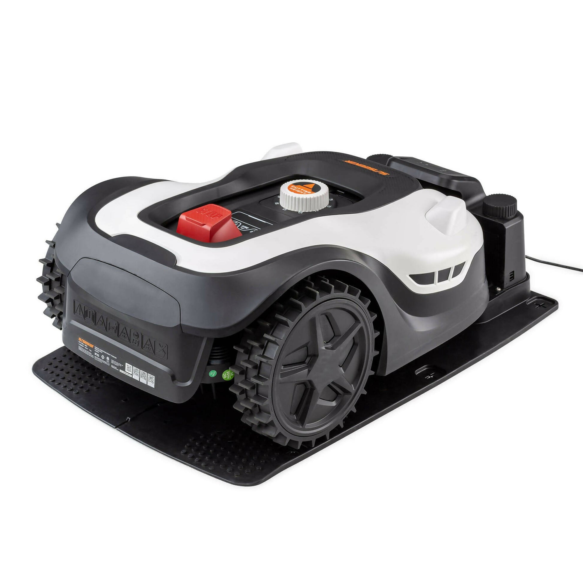 The Sunseeker L22 Plus Robotic Mower takes mowing off your to-do list. This high-powered robotic mower is ultra quiet, easy to setup, and controlled by you from anywhere. Connect through Bluetooth or Wi-Fi, download the Robotic Mower App (Apple or Google Store), and you can program a mowing routine that works with your schedule. The anti-slip wheels can climb up to a 20-degree incline and seamlessly mow uneven terrain. The Robotic Mower has automatic float-cutting technology to raise or lower the blades when hitting rough patches. The 3 razor-sharp blades deliver a cutting width of 8.7 inches, and the adjustable dial switches the blades between a cutting height of 1.6 to 3.2 inches. Grass clippings fall back into the grass to provide nutrients to the ground resulting in a greener, healthier yard. The ultra-sonic technology senses obstacles and has bumper sensors to safely twist and turn to keep mowing. Safety is our number one priority – the Robotic mower is equipped with an auto-stop feature when lifted, flipped, tilted, or senses a collision. It is also equipped with anti-theft technology. This mower also has a rain sensor and low battery sensor to return to the base when detected. Save time, effort, and money with the Sunseeker L Robotic Mower.