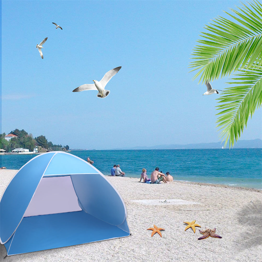 THBOXES Automatic Beach Tent Pop Up Waterproof Breathable Sun Umbrella Blue