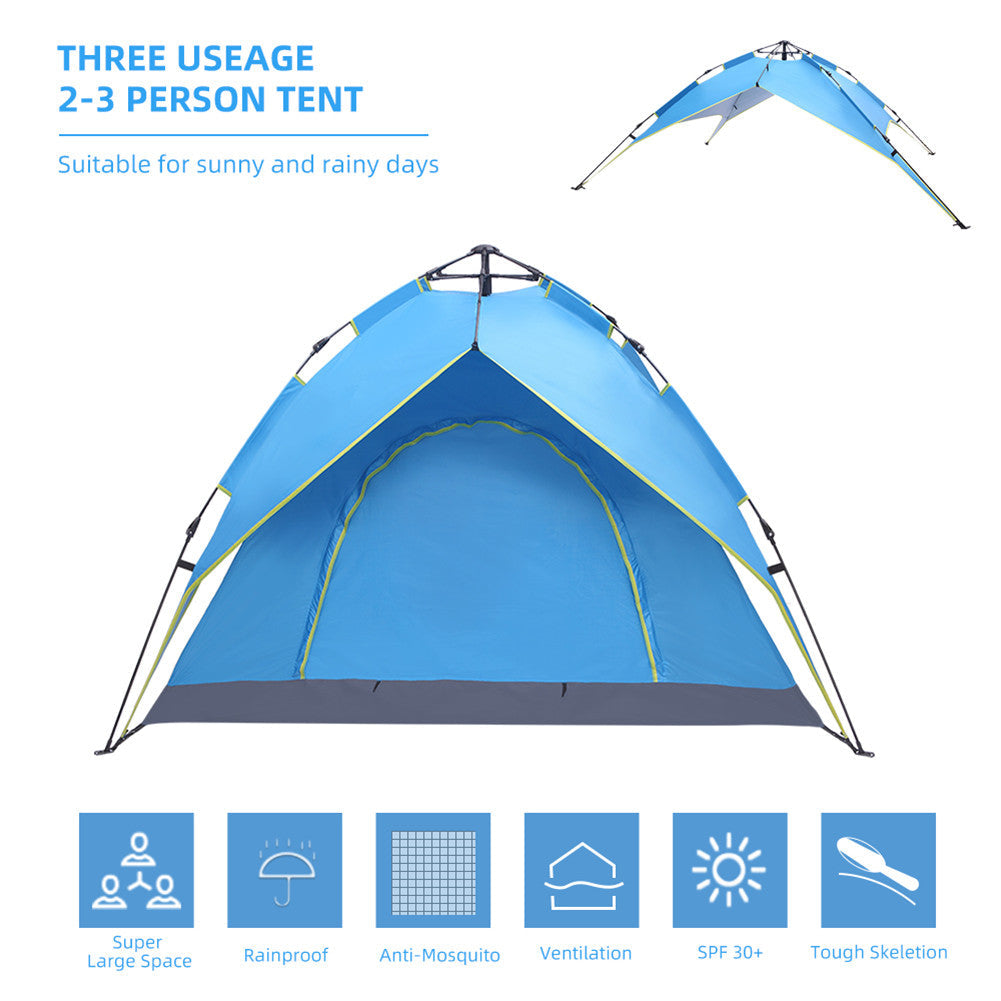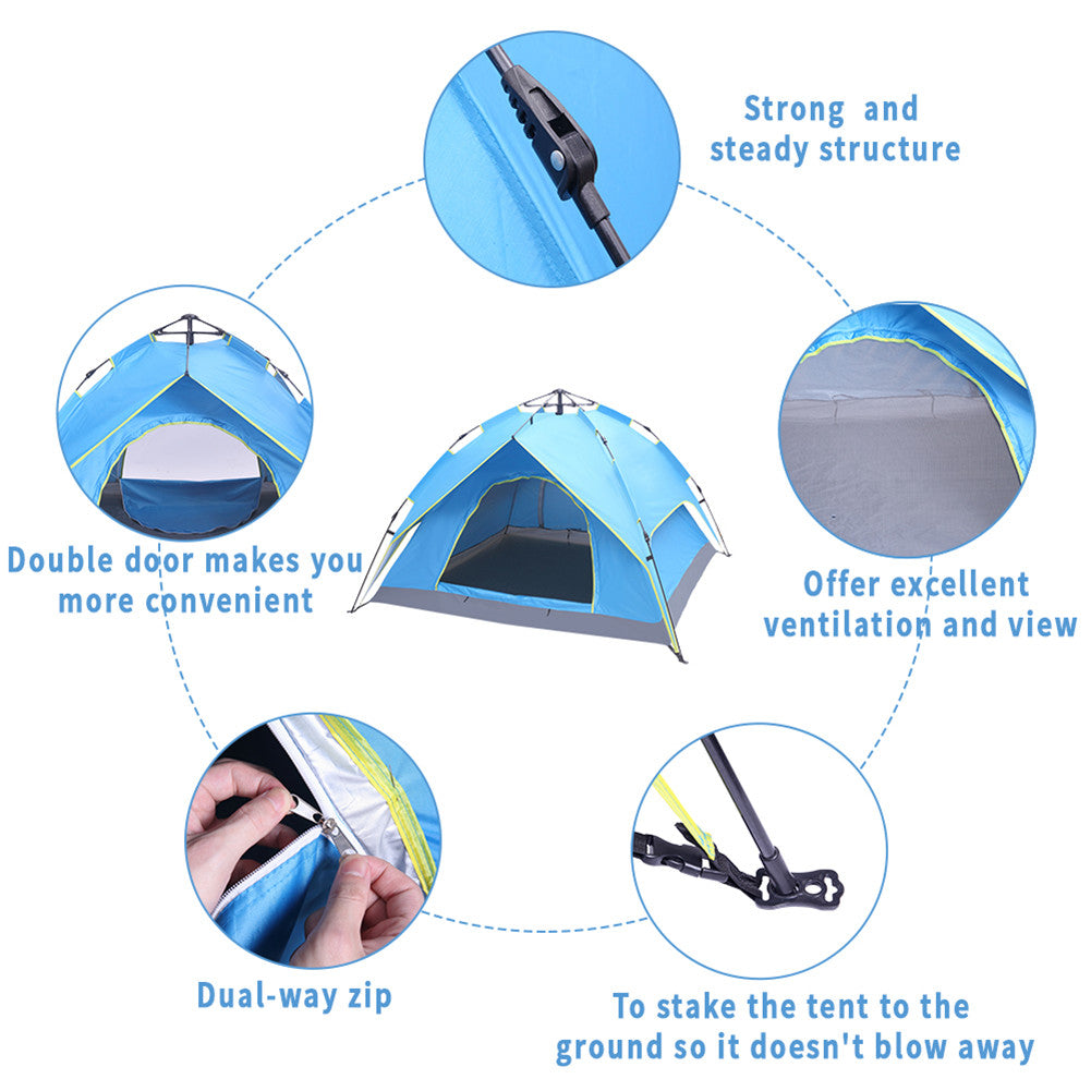 THBOXES Camping Tent 4-side Double-layer Double-door Hydraulic Easy Setup Tent Blue