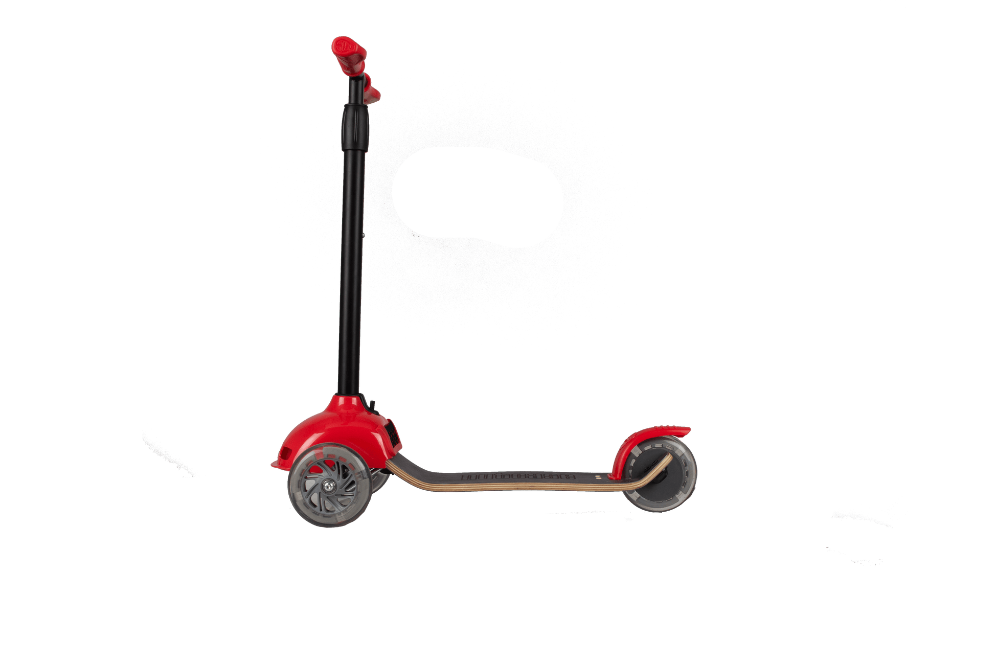 SUSTAINABLE, premium 7-ply solid wooden scooter deck with, laser engraved logo and a large integrated brake, for maximum grip and safe rides while scooting. Supports up to 50kg.