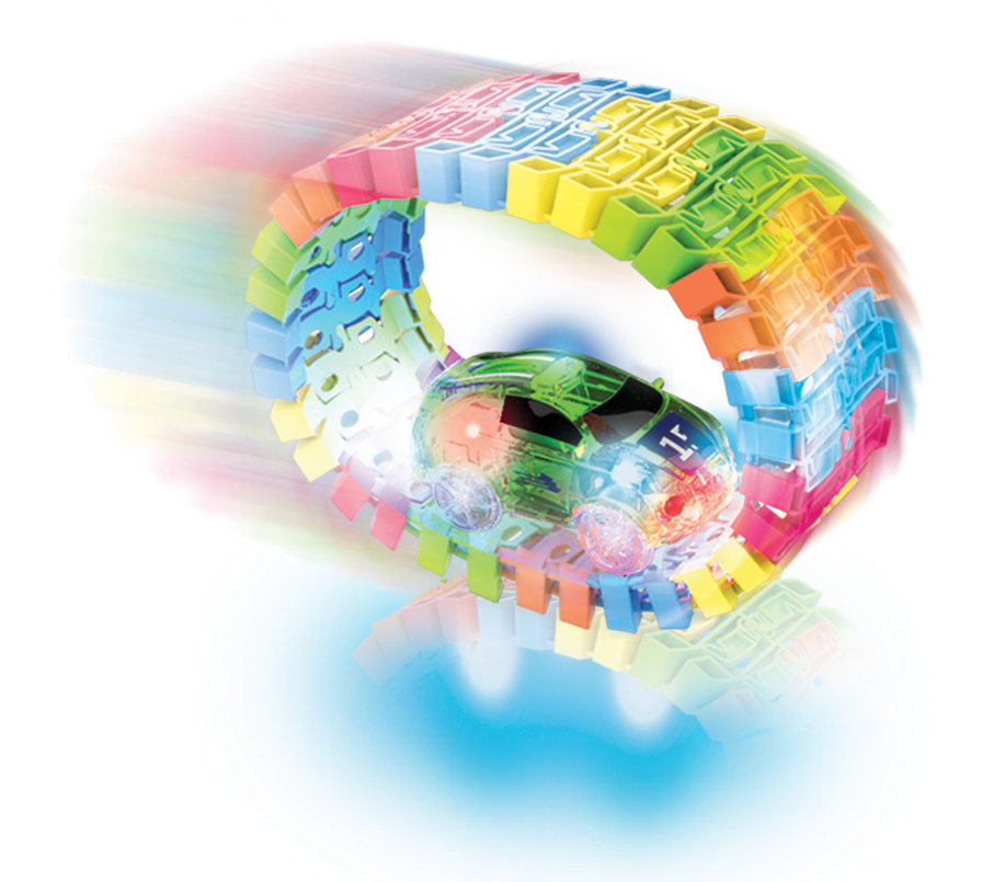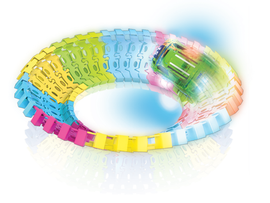 Includes 11' feet (220 pieces) of neon glow in the dark (5 glow colors) flexible assembly track
