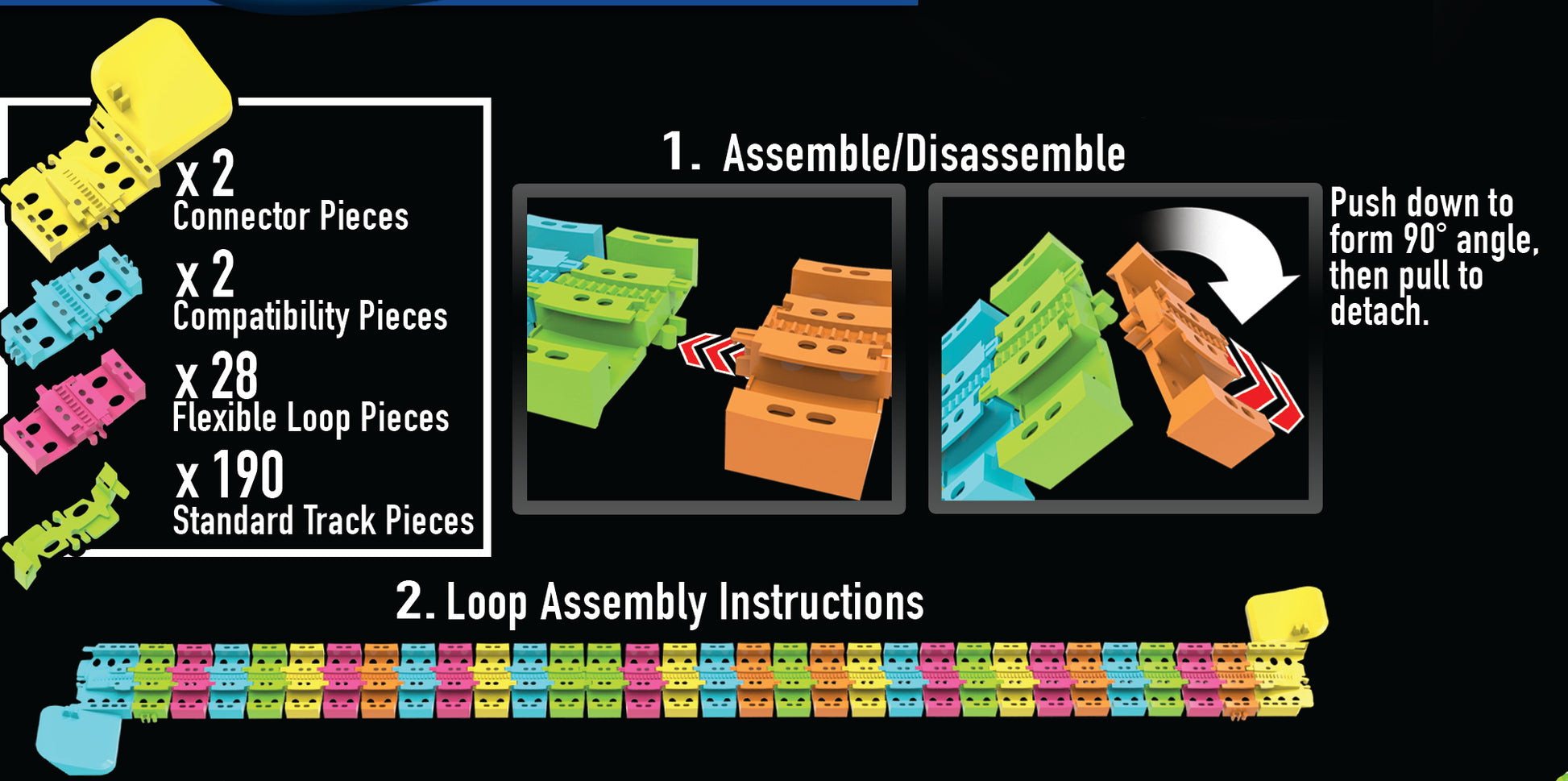Compatible with tracks from previous Twister Trax sets; loop not compatible with cars from previous Twister Trax sets