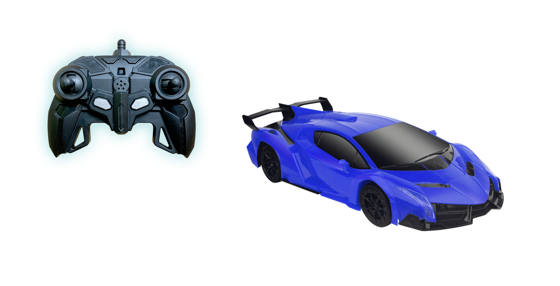 Includes 1x Blue Turbo Twister Morpher RC car and 1x remote