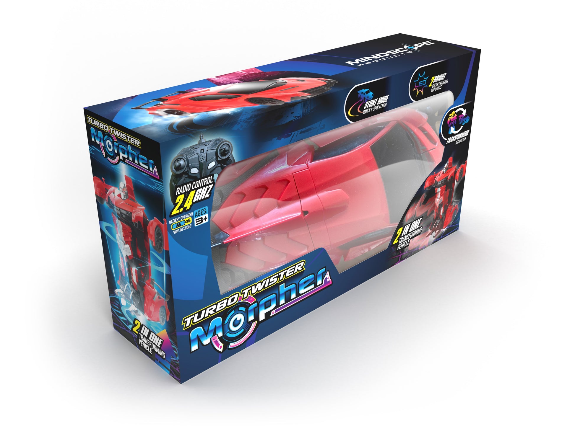 Includes 1x Blue Turbo Twister Morpher RC car and 1x remote