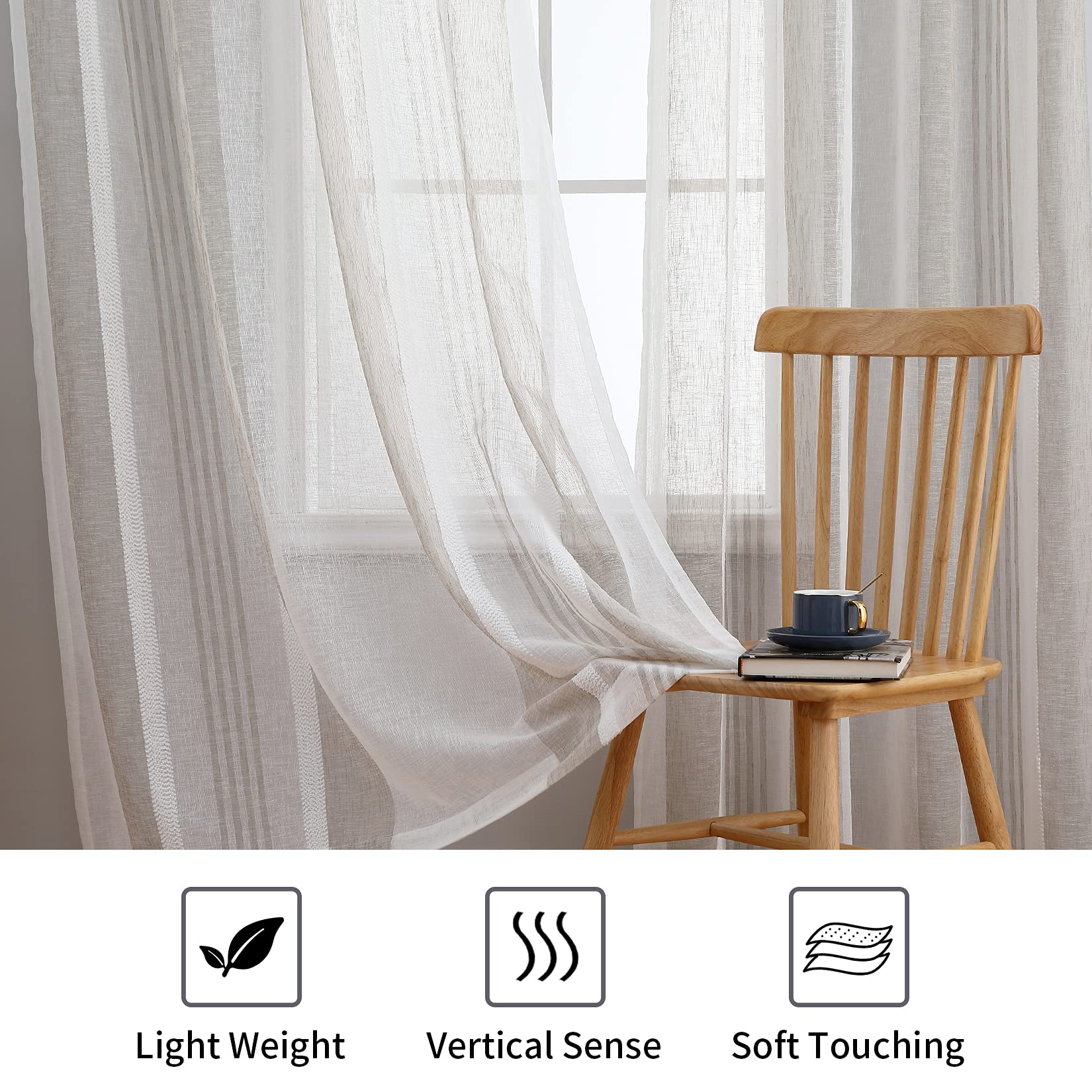 WHIZMAX 52 inches W Sheer Curtains for Living Room Bedroom Beige 52 inches W x84 inches L