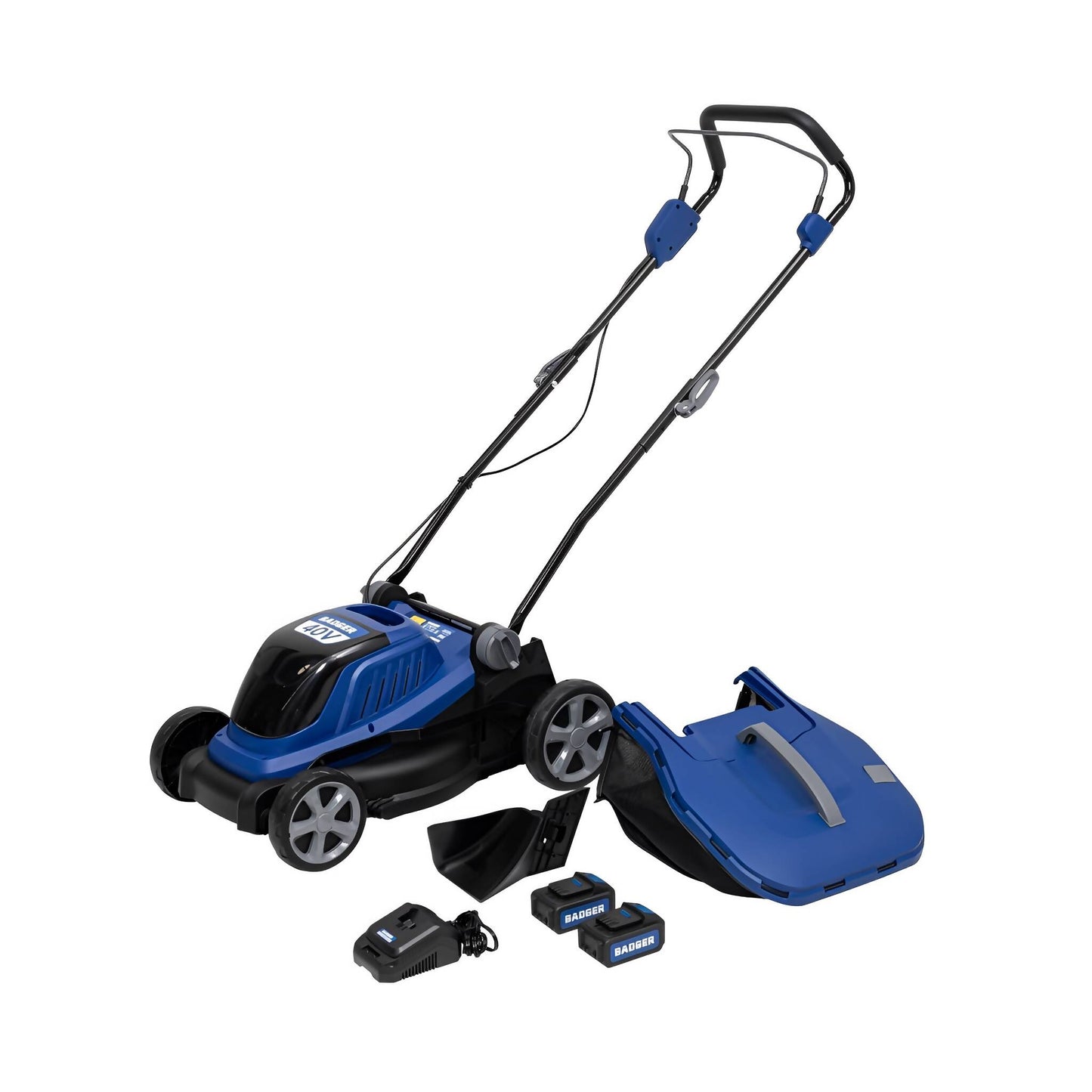 Wild Badger Power Cordless 20 Volt 16-inch Lawn Mower, Includes (2) 4.0 Ah Batteries and (2) Fast Chargers