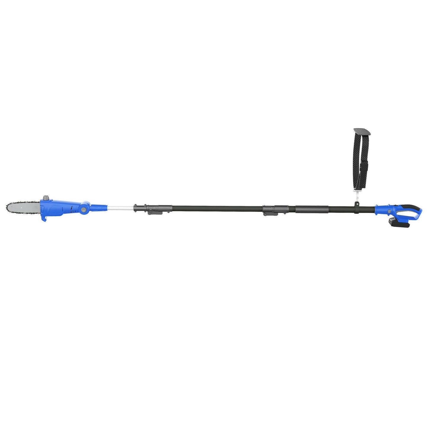 The Wild Badger Power 20 Volt Pole Saw comes equipped with an 8-inch bar and chain to handle all your pruning needs. The well-balanced design and durable pole shaft extends nearly two feet for more than seven feet in overall length. It has an auto-oiling feature for added convenience and time saving. The cushioned, over-molded handles provide extra comfort. The pole saw is powered by the Wild Badger Power 20 Volt battery system. The system has many tools meaning you can use the same battery for many different lawn care needs.