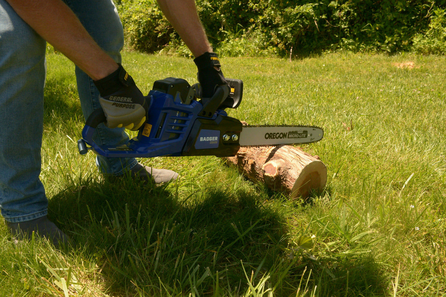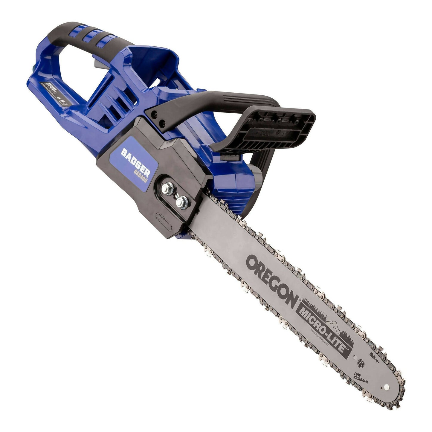 The Wild Badger Power 40 Volt 16-inch Brushless Chainsaw includes features to make your cutting experiences just as efficient as a gas unit, with the convenience of battery powered operation. With a 4.0Ah, high-capacity, 40 Volt lithium-ion battery and a brushless motor, this chainsaw is perfect for residential use. The electronical chain brake provides ultimate safety. With features like side access, tool-free chain tensioning and an automatic oiler, you will experience easy, comfortable operation for any clearing job. This chainsaw is compatible with all 40 Volt batteries and chargers. With all these gas-like features and power, you can trust Wild Badger Power to get the job done.